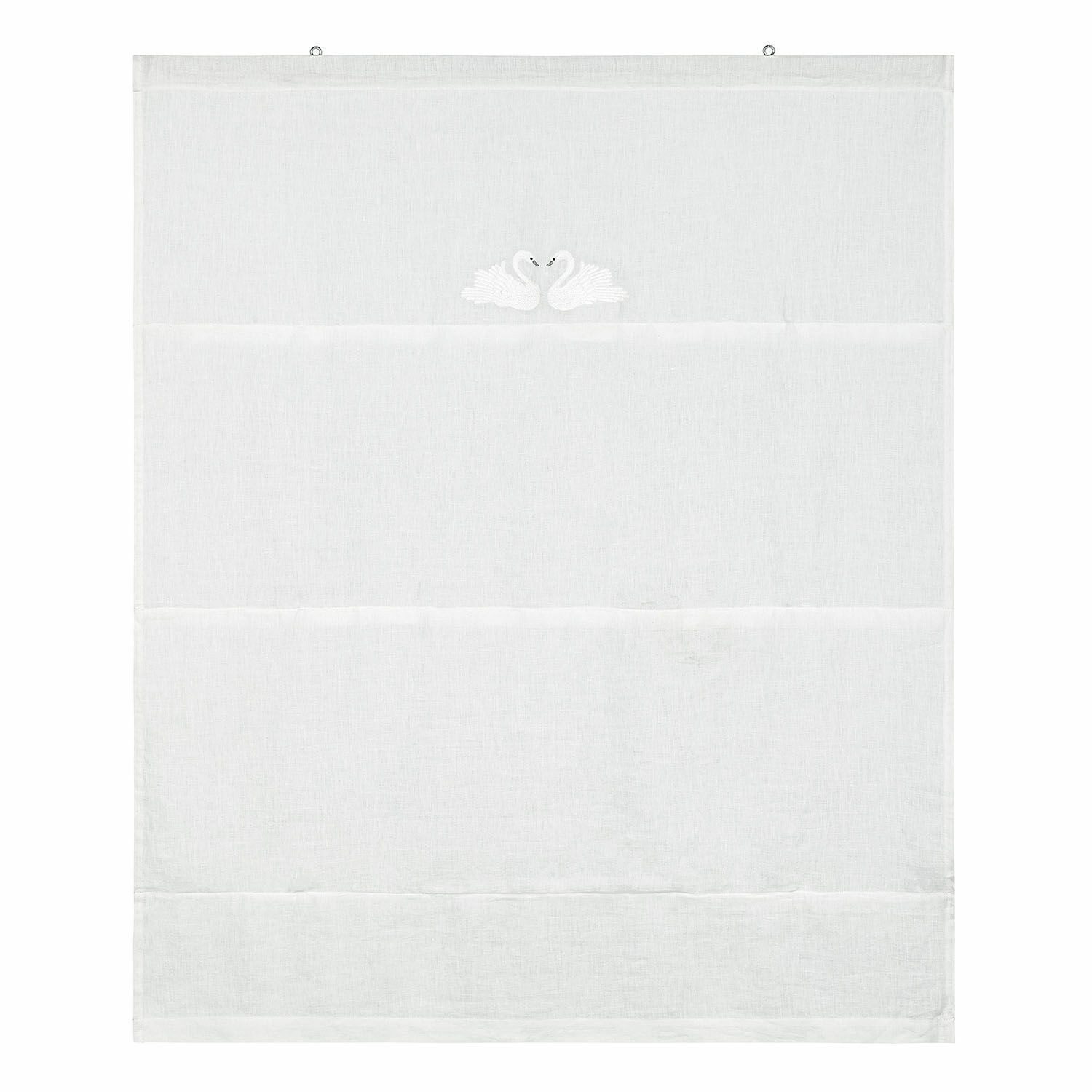 Mit liebevoll besticktem Schwanenpaar. Reines Leinen mit zartem Fall und natürlicher Struktur. Einfache Aufhängung an Metallösen, mit beschwerendem Pinienholzstab. Dieses Raffrollo vereint Leichtigkeit und Romantik. Der transparente Leinenstoff lässt das Licht sanft hindurchscheinen und verleiht dem Raum eine luftige Atmosphäre. Das gestickte Schwanenpaar in der Mitte sorgt für einen verspielten Blickfang. Ideal für Kinderzimmer oder Räume mit einem Hauch von Poesie.