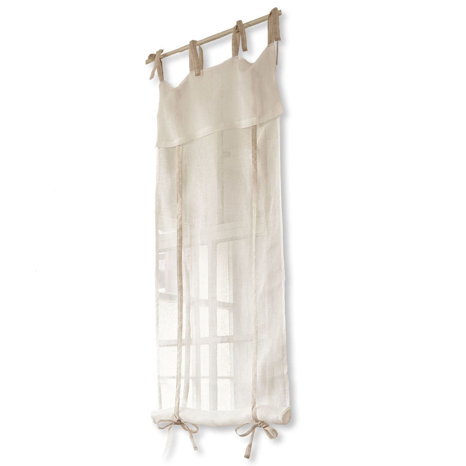 Lichtdurchlässige Leinengardine im zauberhaften Landhaus-Look. Mit eingearbeiteten Bändern zum Variieren der Длина Das lichtdurchlässige Leinen lässt kleine Fenster wirken und verleiht Ihrem Zuhause gleichzeitig einen charmanten Landhaus-Look. Die Bindebänder haben einerseits den praktischen Nutzen, dass sie die Gardine schnell und problemlos befestigen können, tragen aber auch zu dem Stil bei. Abgerundet wird dieser durch die längs gearbeiteten Bänder, mit denen Sie gleichzeitig die Длина variieren können, so passt sie sich selbst dem kleinsten Fenster an und verleiht ihm ein allerliebsten Aussehen.