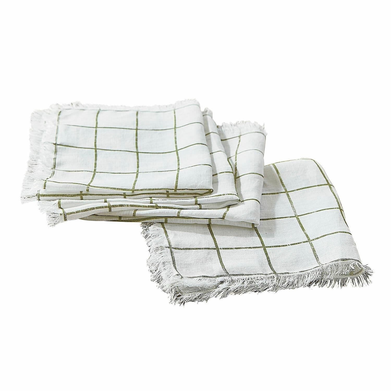 Zeitloses Karomuster, liebevoll umringt von schmalen Fransen. Fügt sich in jede Tischdekoration perfekt ein. Aus 100% waschbarem Leinen. Dieses Servietten-Set aus reinem Leinen verbindet Tradition mit einem modernen Touch. Das dezente Karomuster in Grün und die Fransen-Details verleihen Ihrer Tafel einen rustikalen Charme. Dank des weichen Leinens liegt jede Serviette angenehm in der Hand und sorgt für eine natürliche Atmosphäre bei jedem Dinner. Perfekt für den Alltag oder festliche Anlässe.