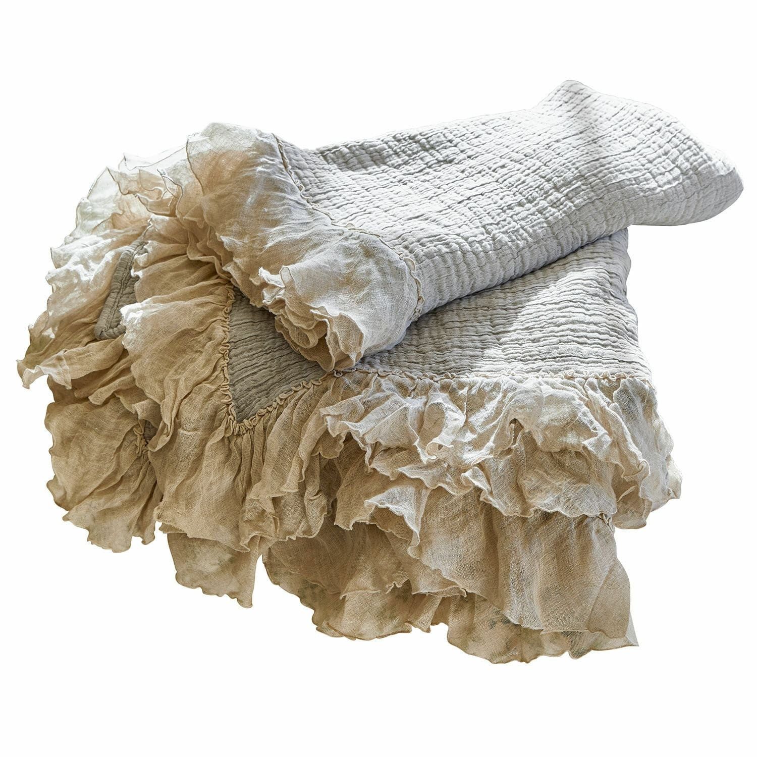 Must-Have für ein stilvolles Zuhause. Idealer Sommerbegleiter. Verspielt, mit luftig-leichten Leinenrüschen. Träumen Sie nicht auch von einem zauberhaften Sommer? Dieser Quilt aus feinster Baumwolle mit leichten Leinenrüschen an den Enden ist wie ein frischer Windhauch in einer lauen Sommernacht. Definitiv ist er mehr als nur ein einfaches Accessoire – er ist ein echter Eye-Catcher. Faszinierend weich und charmant in seinem Design, wird er Ihr Zuhause noch schöner machen. Legen Sie ihn über Ihr Bett oder drapieren Sie ihn auf Ihrem Lieblingssessel, um ein Wohlfühl-Ambiente zu schaffen.