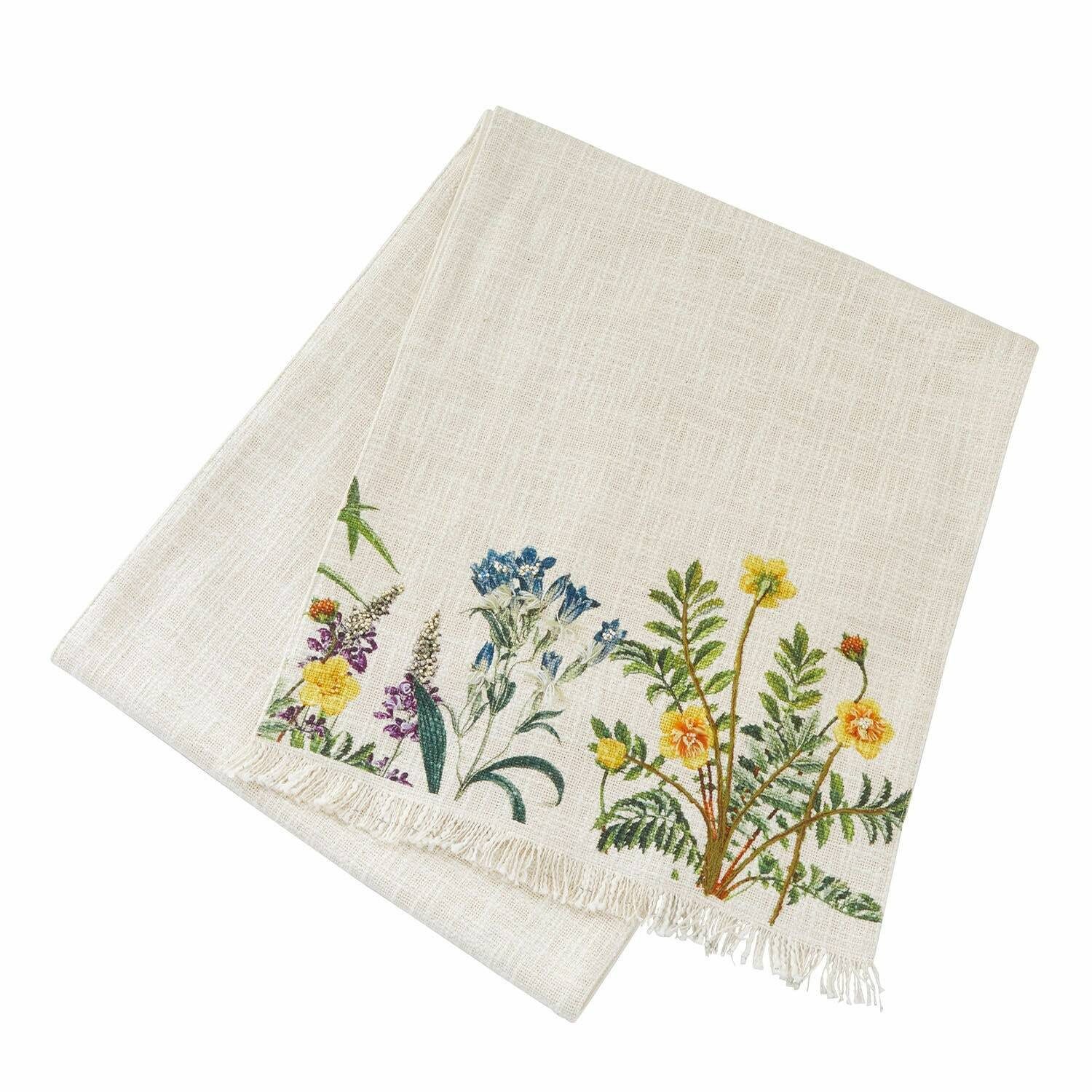 Grobe Webstruktur aus 100% doppellagiger Baumwolle. Aufwendige Blumenstickerei mit feinen Perlenakzenten. Verspielte Fransenkante an den kurzen Enden. Dieser Tischläufer aus reiner Baumwolle vereint traditionelle Handwerkskunst mit modernen Details. Die grobe Webstruktur und die doppellagige Verarbeitung sorgen für eine angenehme Dicke und ein hochwertiges Gefühl. Die farbenfrohe Blumenstickerei, kombiniert mit feinen Perlen und einer Fransenkante, bringt frische Akzente auf Ihren Tisch.