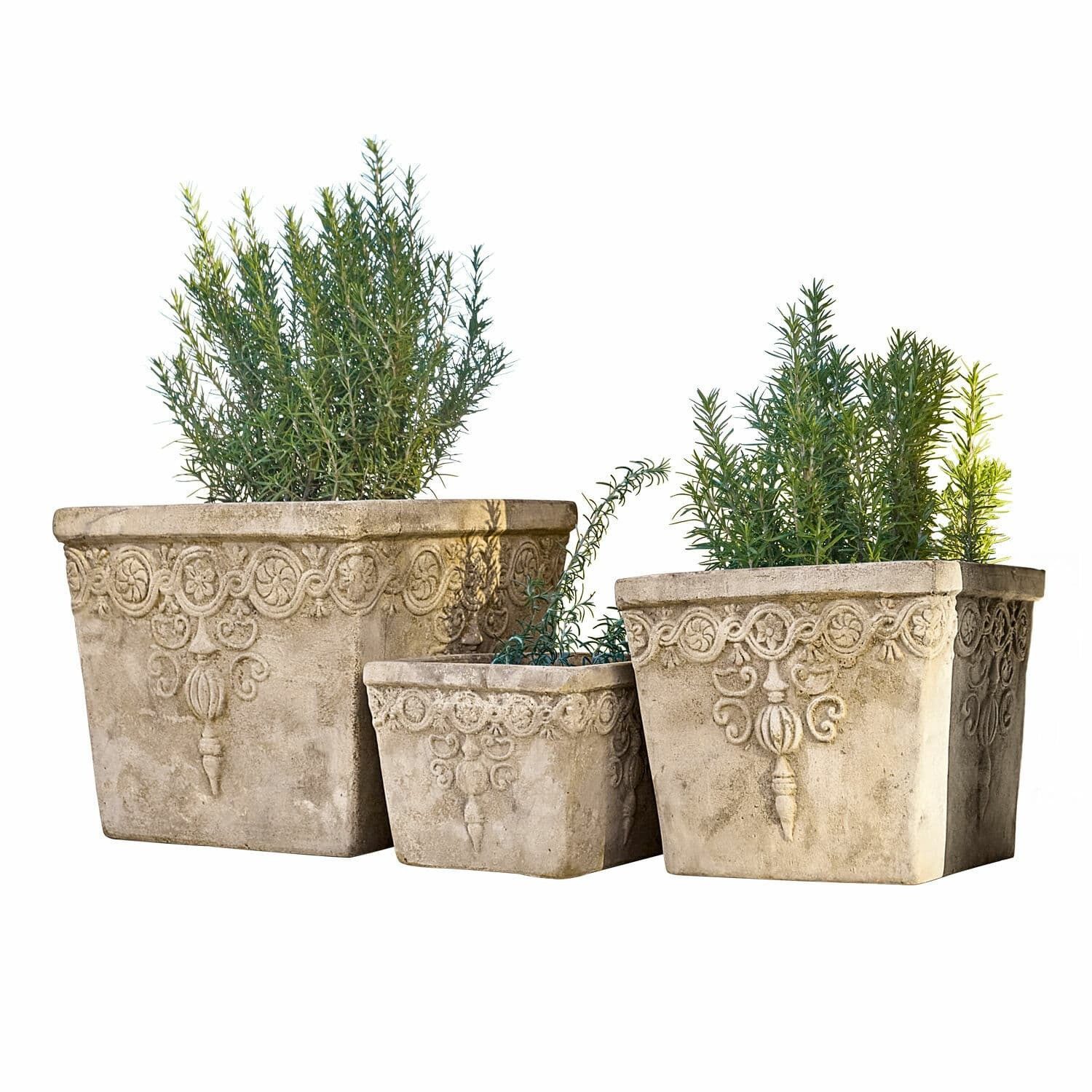 Kunstvolle Ornamente und mediterraner Look. Ton in Terrakotta-Optik. Hochwertiges Trio in verschiedenen Größen. Das stilvolle Trio zaubert Mittelmeer-Flair in den Garten, auf den Balkon oder die Veranda, und auch innen genutzt machen diese drei edlen Designs eine gute Figur, vielleicht auf der Fensterbank platziert. Hier finden Blüten, Kräuter, Grünpflanzen und Gräser ein wunderbares Plätzchen, und jedes Ambiente gewinnt einen charmanten Deko-Akzent mit nostalgischer Note. Sie erhalten hier drei Größen im harmonischen Set.