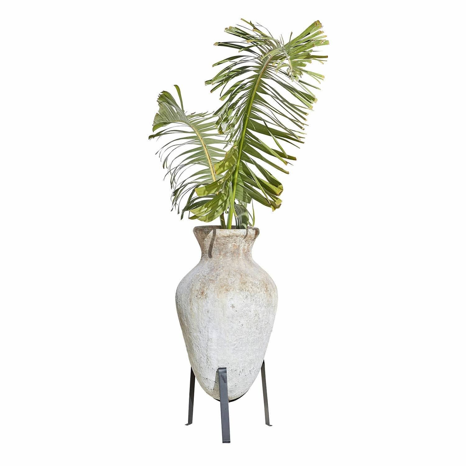 Faszinierendes Schmuckstück im modernen, mediterranen Stil. Perfekt für Garten und Balkon. Ein aufwendiges Antik-Finish erweckt den Eindruck einer Steinvase. Verwandeln Sie Ihre Outdoor-Oase in ein Paradies: Dieser Übertopf freut sich darauf, ein Highlight Ihrer Gartendeko zu werden. Er ist aus Kunststein gefertigt und mit einem Antik-Finish versehen – ein wahres Meisterwerk, das Ihnen das Gefühl einer edlen Steinvase gibt. Das einzigartige Gestell aus Eisen verleiht dem Übertopf einen modernen, mediterranen Stil und stellt sicher, dass er selbst in anspruchsvollen Außenbereichen ein Blickfang ist. Verwenden Sie ihn im Garten oder auf Ihrem großzügigen Balkon, um eine beeindruckende Atmosphäre zu schaffen. Verleihen Sie Ihren Blumensträußen den Rahmen, den sie verdienen, sei es mit frischen Blumen oder stilvollen Trockenblumen.