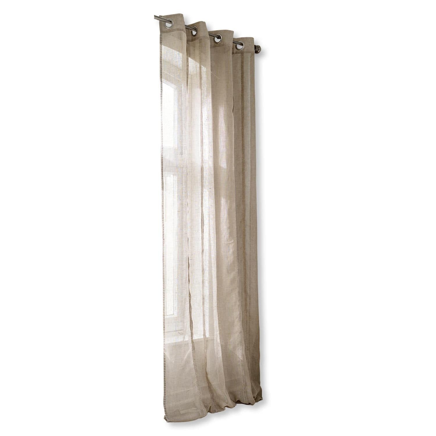 Klassische Eleganz mit hübschen Ziernähten. Aus reinem Leinen. Acht Metallringe sorgen für eine ganz leichte Aufhängung. Schützen Sie charmant Ihre Privatsphäre und machen Sie es sich zu Hause so richtig gemütlich. Das leichte und zeitlose Design passt sich jedem Ambiente harmonisch an. Das feine Naturgewebe hat einen hübschen Fall. Ob Landhaus-Stil oder Shabby-Chic – das perfekte Wohn-Accessoire für Ihre Fenster, mit dem Sie neugierige Blicke einfach aussperren und zugleich einen dekorativen Akzent setzen.