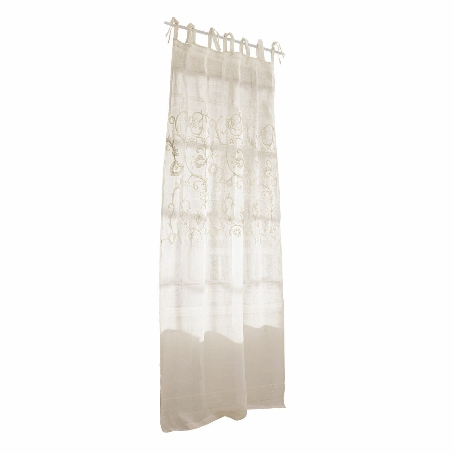 Ein zartes Wohntextil aus reinem Leinen mit bezaubernder Stickerei. Blütenfrischer und sehr romantischer Eindruck. Perfekt zum Shabby-Chic. Aus hochwertigem Leinen gewebt. Hell, frisch und blütenrein schmückt es jedes Fenster. Besonders bemerkenswert ist die detailverliebte Stickerei. Die verspielten Blütenranken wirken sehr zart und romantisch. Dank der sehr großzügigen Maße auch für große und hohe Fenster wie in Altbauten wunderbar geeignet. Dekorative Bindebänder machen die Aufhängung an einer Gardinenstange ganz einfach. Leinen wirkt als hochwertiges Naturgewebe leicht kühlend, was an warmen Tagen sehr angenehm sein kann. Ein leichter Sichtschutz für entspannte Stunden. Bei 30° ist das feine Accessoire waschbar, so dass es immer duftig bleibt. Zum Landhaus-Stil, im Shabby-Chic und in romantischen Wohnwelten ein bezaubernder Akzent. Perfekt für alle, die sich einen Hauch Romantik und stilechtes Vintage-Flair in ihrem Zuhause wünschen. Denn die Welt ist oft schon stressig genug – genießen Sie wenigstens zu Hause Ihre wohlverdiente Ruhe in einem harmonischen Ambiente.