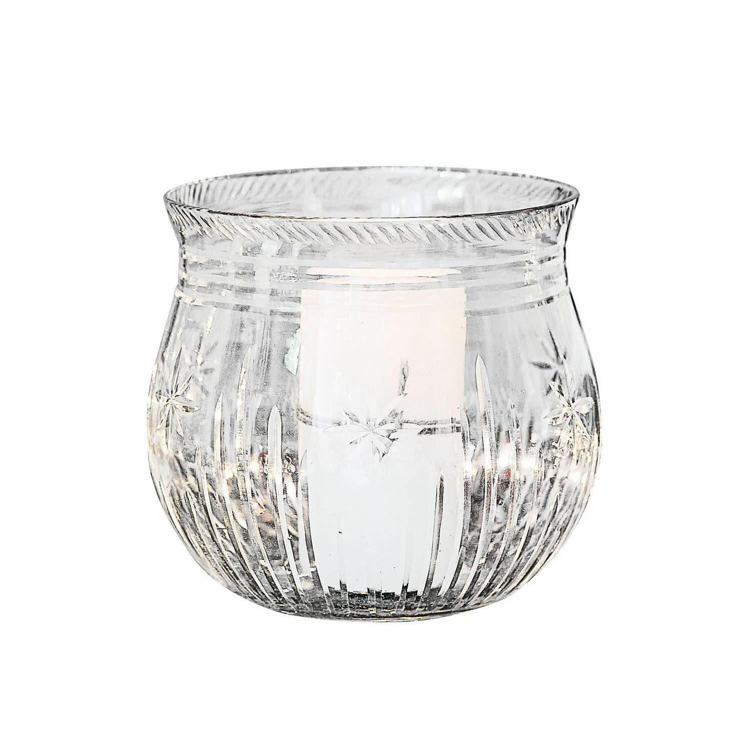 Ein funkelndes Schmuckstück aus Glas. Mundgeblasen und von Hand geschliffen. Auch als Vase verwendbar. Dieses Windlicht ist nicht imposant groß und wird doch die Blicke magisch anziehen, wenn es auf einem Tisch oder einer Kommode steht. Denn das Glas ist nicht nur traditionell mundgeblasen, sondern wurde auch von Meisterhand geschliffen. Stellen Sie eine kleine Kerze oder ein Teelicht hinein, wird der Lichtschein durch den kunstvollen Schliff aus Wellen und Sternen gebrochen und das Windlicht beginnt magisch zu schimmern. Und nicht nur in den Abendstunden ist dieses Schauspiel zu beobachten, sondern auch bei Tag, wenn Sonnenstrahlen auf das Windlicht fallen. Auch mit einem kleinen Blumenstrauß oder einer einzelnen Blüte wird das Windlicht zum reizvollen Hingucker.
