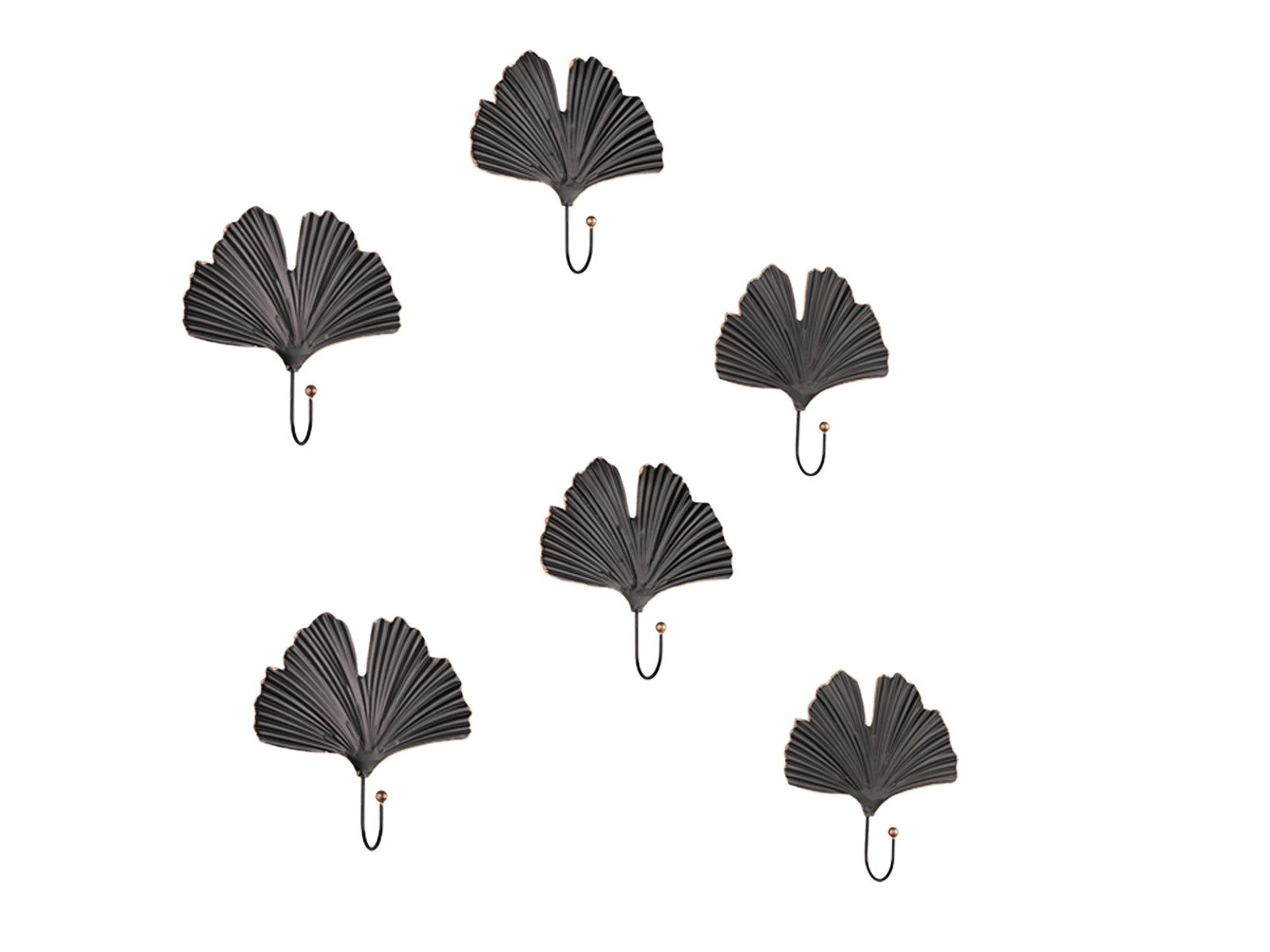 Eleganz trifft Funktion – 6er-Set Garderobenhaken aus Metall in Ginkgoblatt-Form.