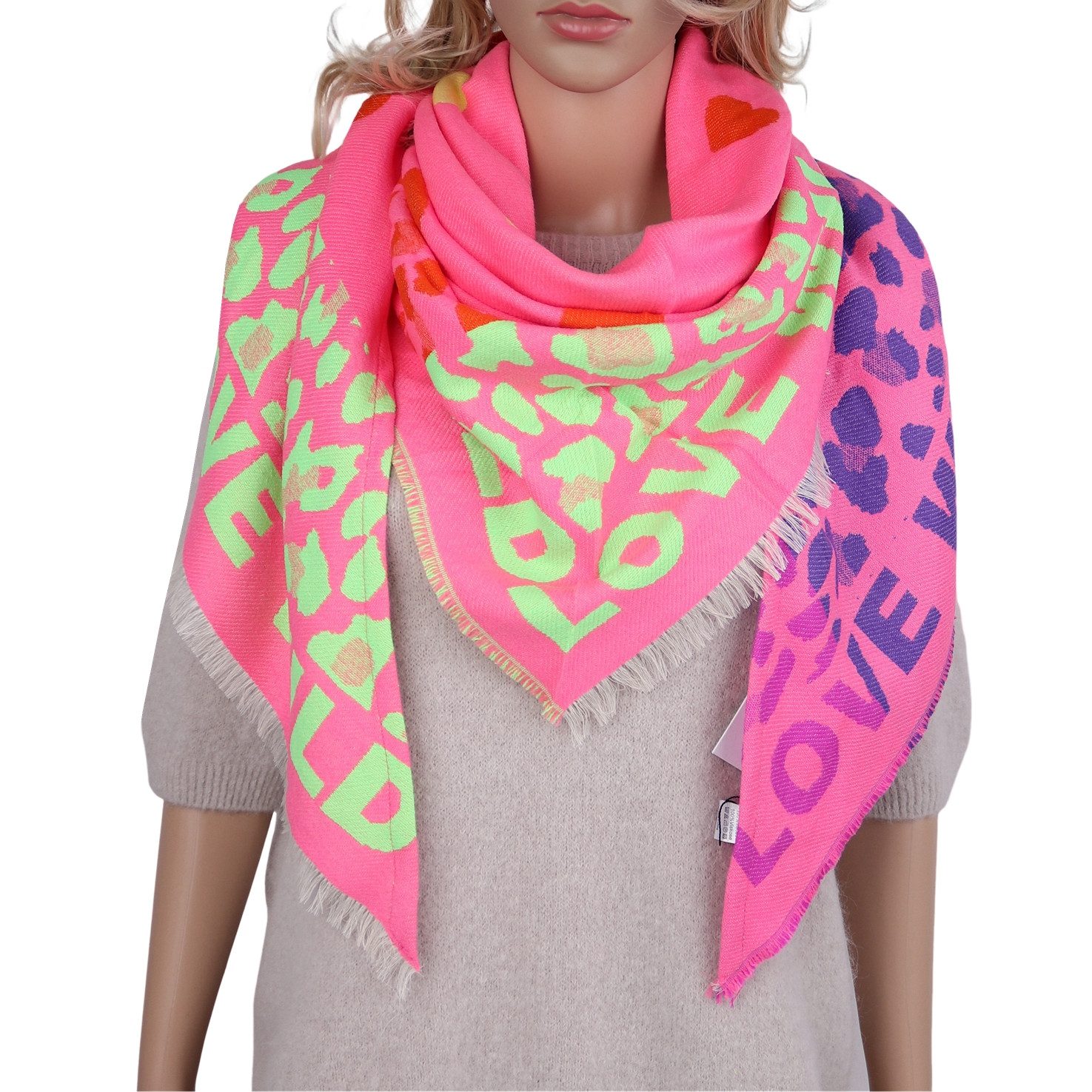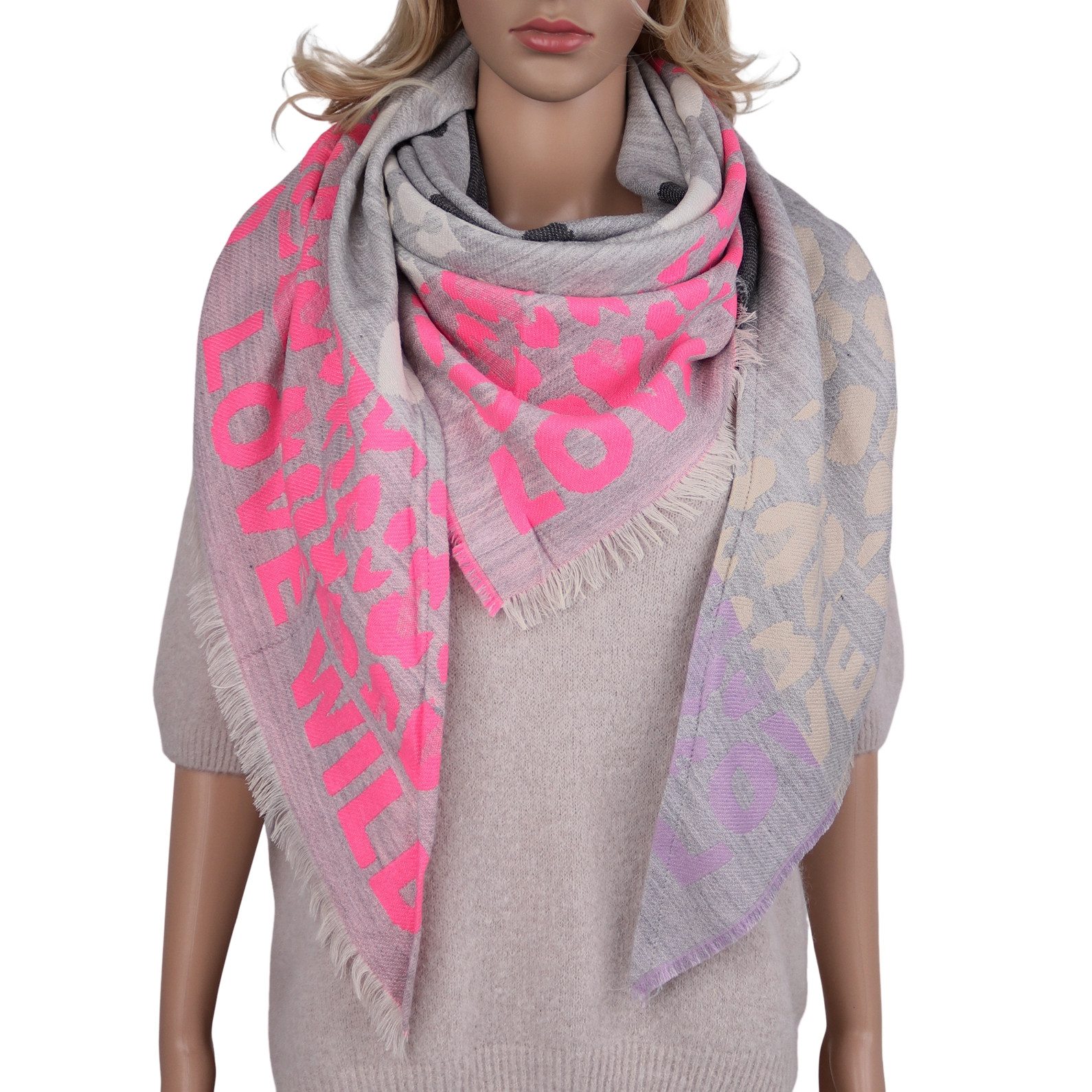 Das angesagte LOVE Herzen Muster verleiht dem Tuch einen trendigen Look, der jedes Outfit aufpeppt – ob casual oder elegant. Tragen Sie es lässig über die Schultern oder kuschelig um den Hals gewickelt, um sich vor Kälte zu schützen und gleichzeitig modisch zu bleiben.