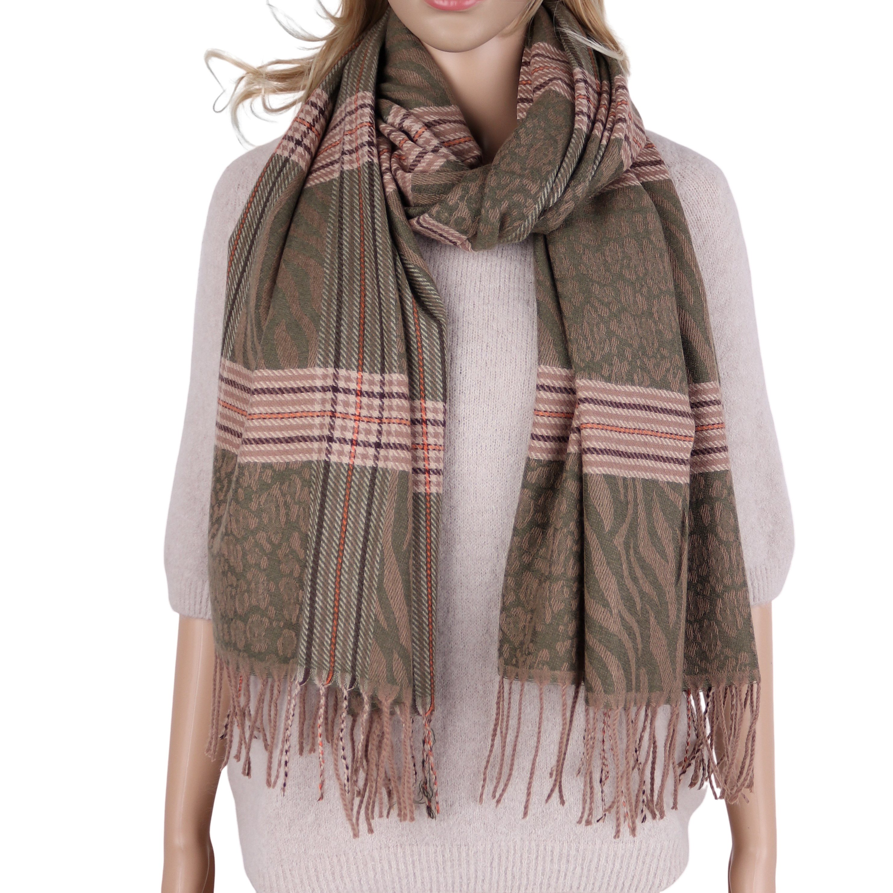 Entdecken Sie unseren kuschelweichen Damen Schal in modischem Leo-Zebra-Muster! Mit einer großzügigen Размер von 70x180 cm bietet er genau die richtige Mischung aus Komfort und Stil für die kühleren Herbst- und Wintertage. Perfekt, um Ihrem Outfit eine elegante und trendige Note zu verleihen. Ein unverzichtbares Accessoire für stilbewusste Frauen und eine ideale Geschenkidee!
