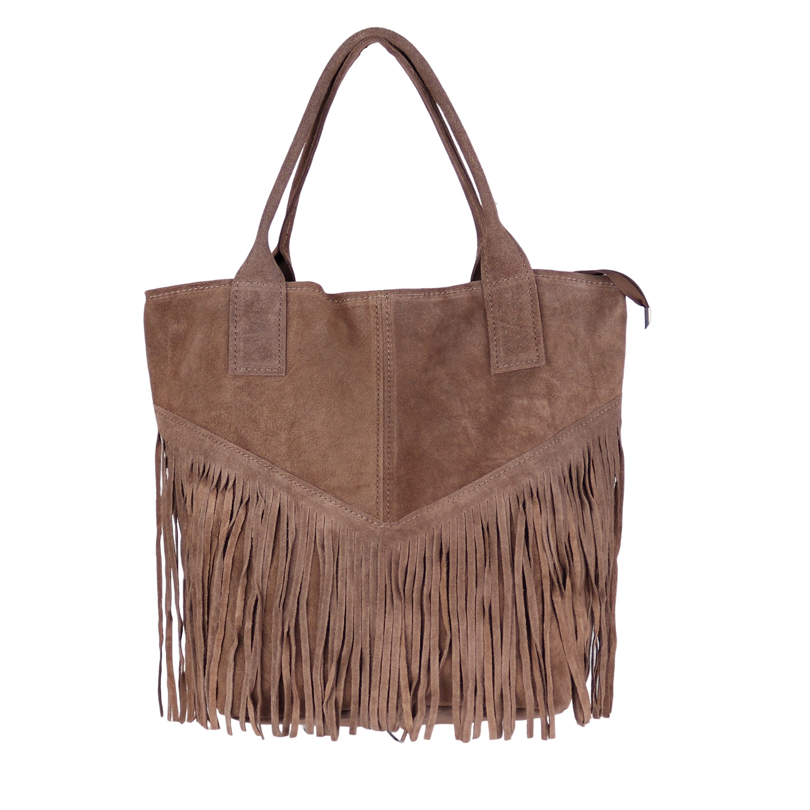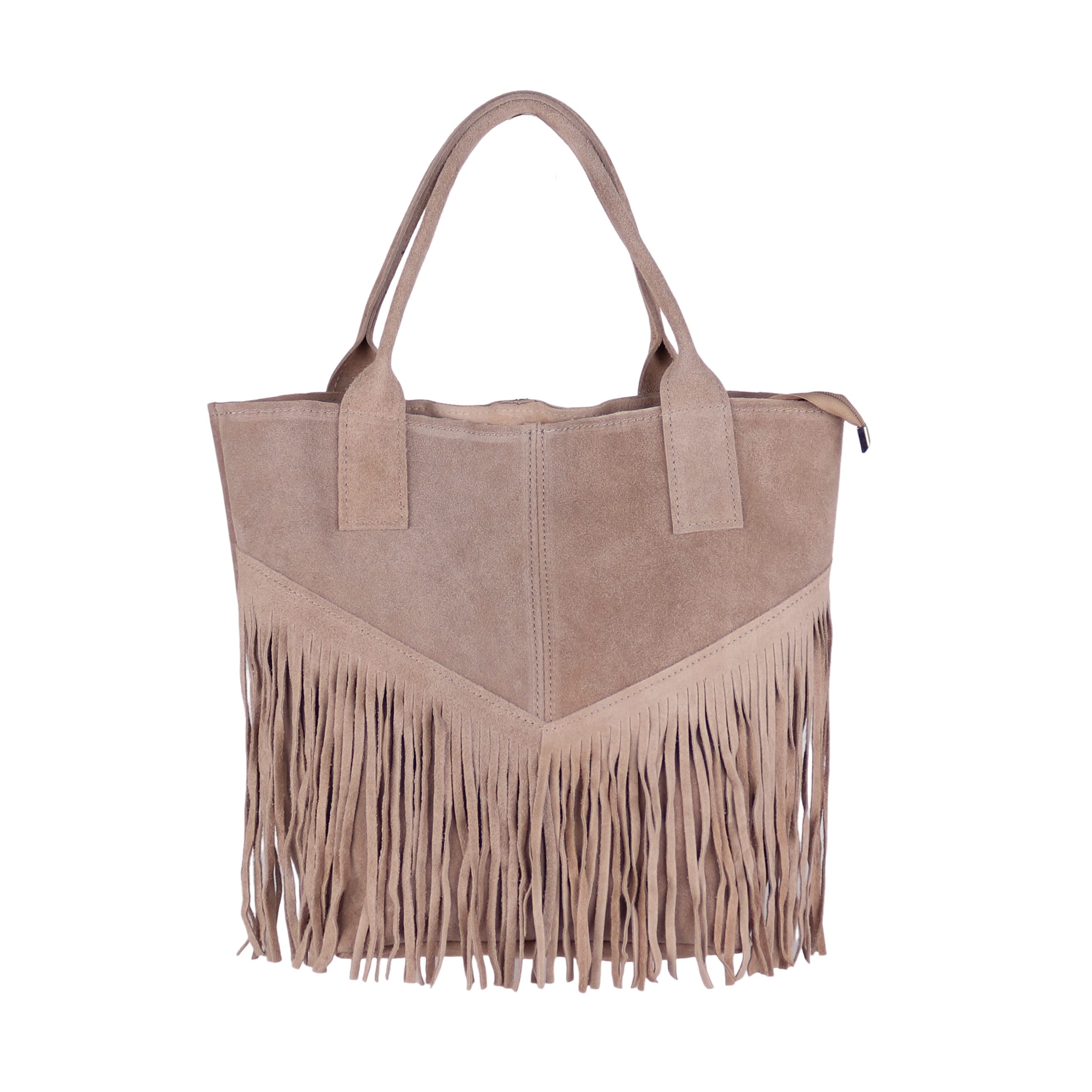Damen Shopper aus Wildleder mit Fransen – Made in Italy Verleihen Sie Ihrem Outfit zeitlose Eleganz mit dieser stilvollen Beuteltasche aus hochwertigem Echtleder (Wildleder). Handgefertigt in Italien, besticht die Tasche durch ihre exquisite Verarbeitung und ein edles Design, das sowohl modern als auch klassisch ist.