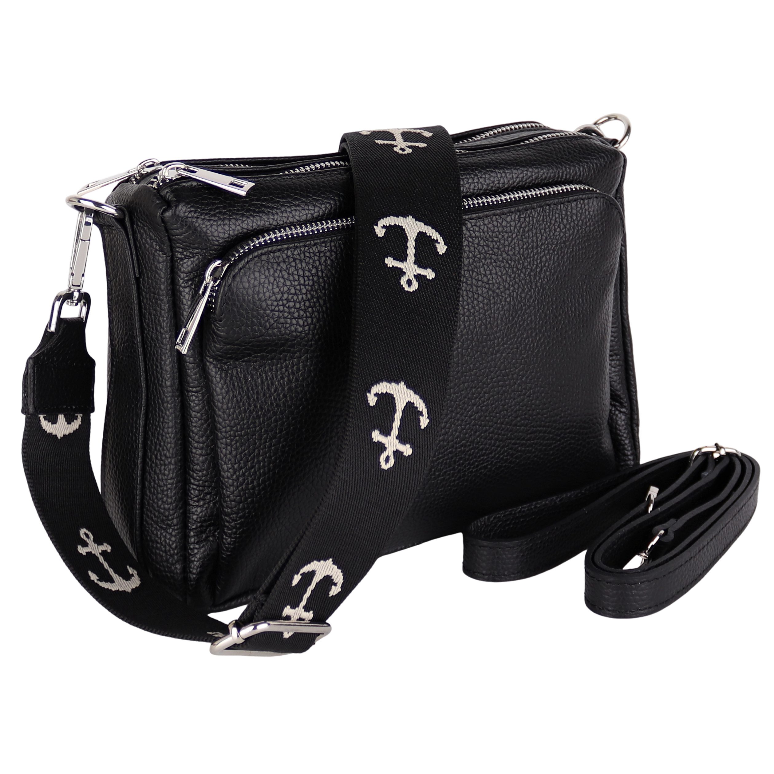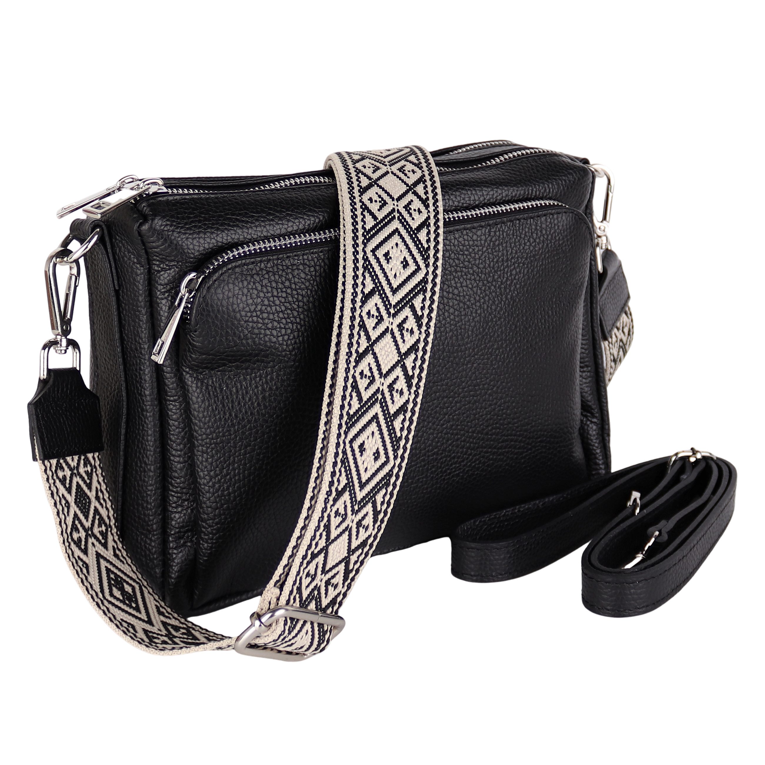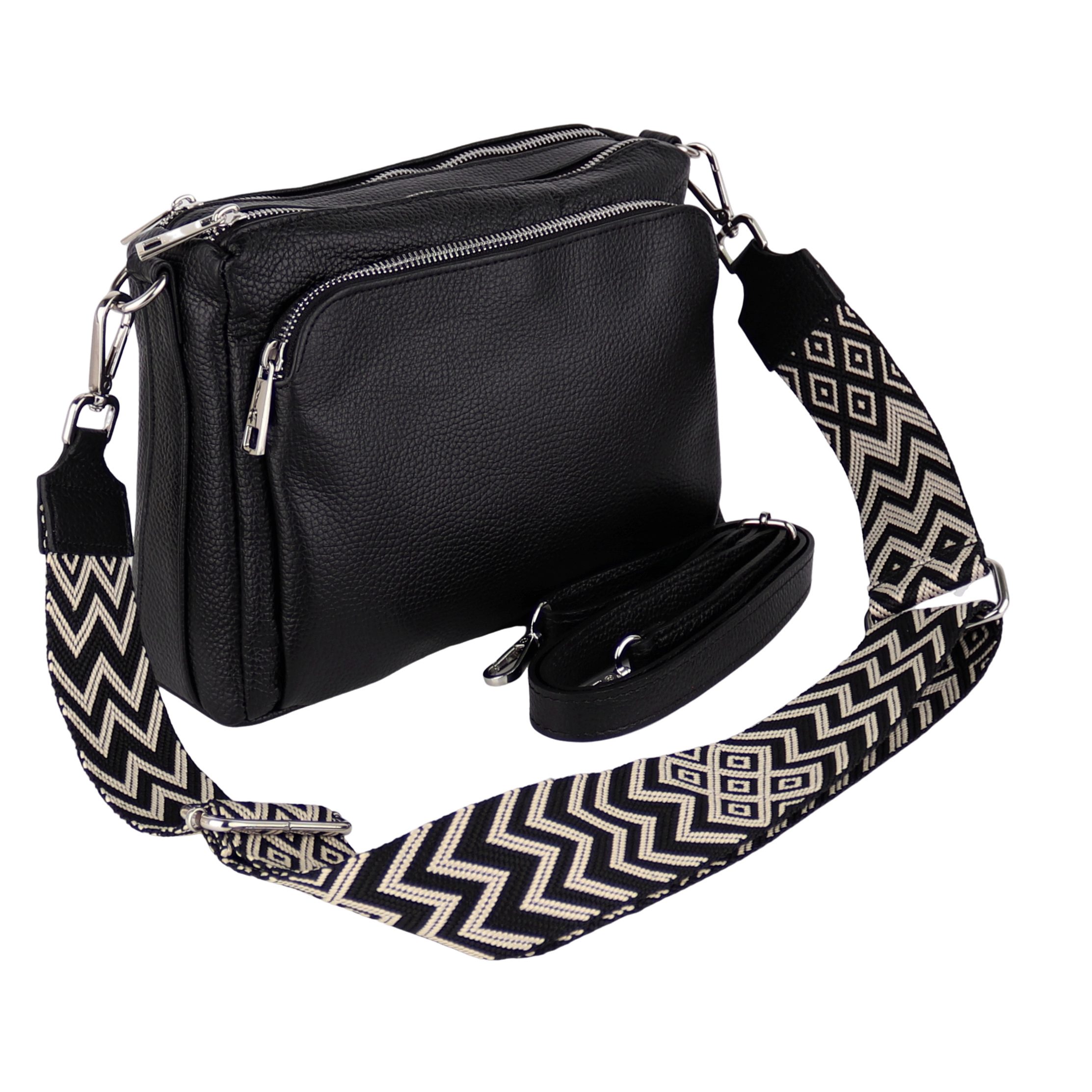 Besondere Merkmale | Crossbody Bag, Schwarz, gemusterten& verstellbaren Schulterriemen |