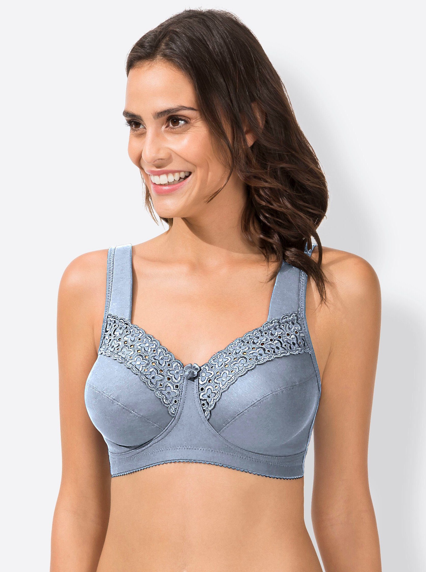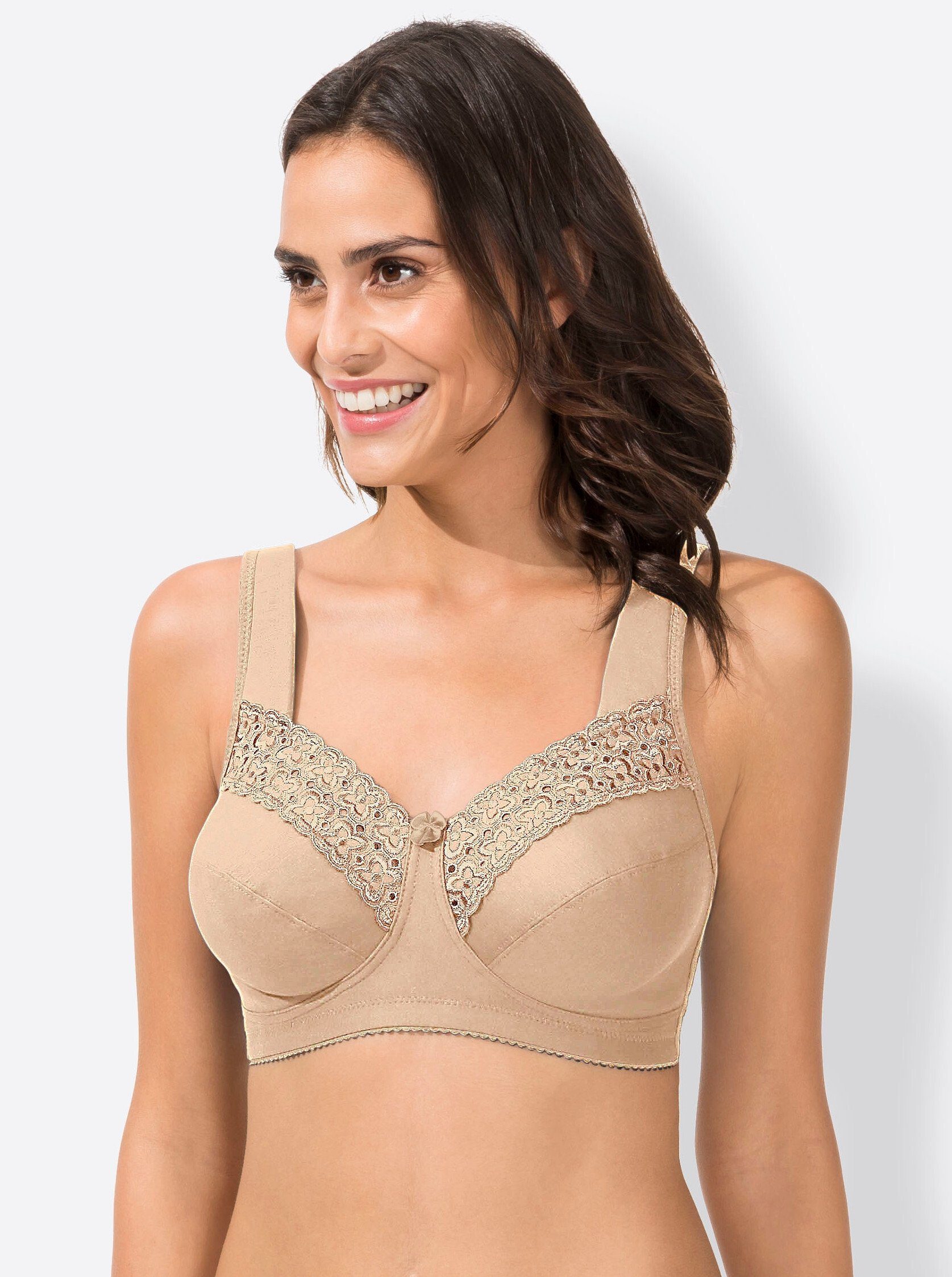 Der BH sieht nicht nur gut aus, sondern er sitzt bei mir auch perfekt und lässt viel Luft an die Haut. Всеrdings fällt die Unterbrustgröße im Vergleich zu meiner gewohnten BH-Размер etwas knapp aus und könnte einen Tick weiter sein. Ich trage den BH auf der ersten Häkchen-Reihe, könnte ihn also nicht weiter stellen. Also muss ich beim nächsten Mal eine Размер größer bestellen oder 3 kg abnehmen. :-) Mit der Zeit gibt das Material ja auch noch etwas nach. Da der BH so toll ist, behalte ich ihn.