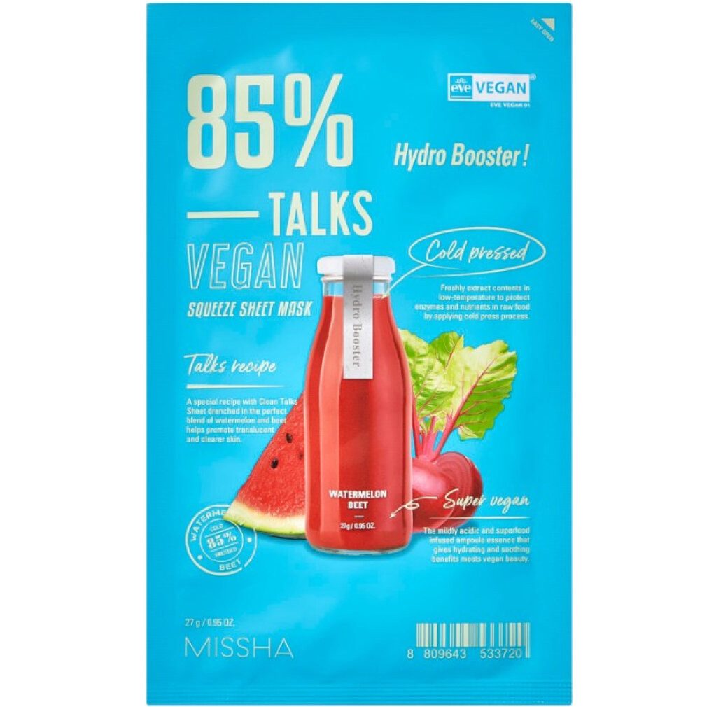 MISSHA Talks Vegan Squeeze Sheet Mask revitalisierende und feuchtigkeitsspendende Sheet Mask auf Basis von Rote-Bete- und Wassermelonen-Extrakten Hydro Booster 27g