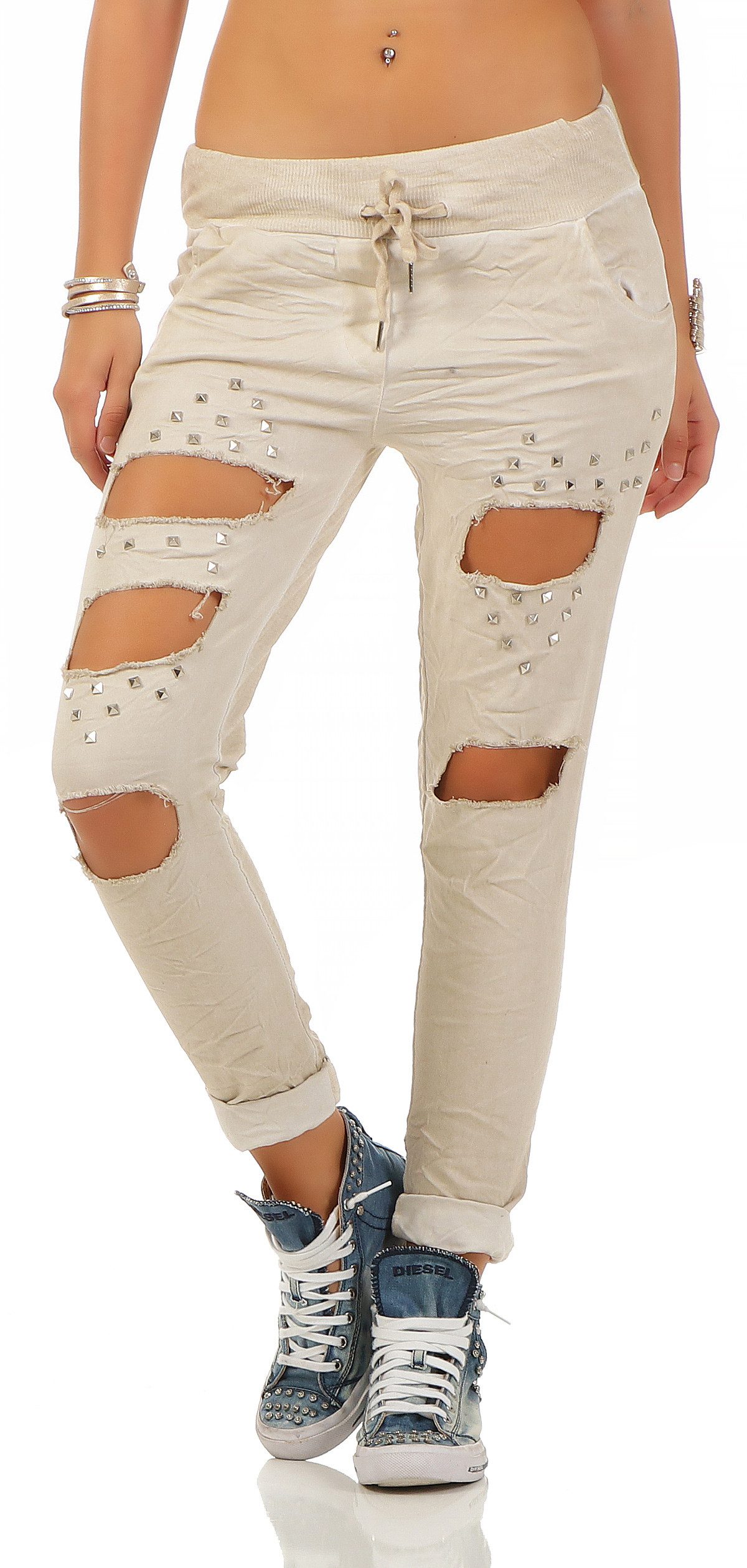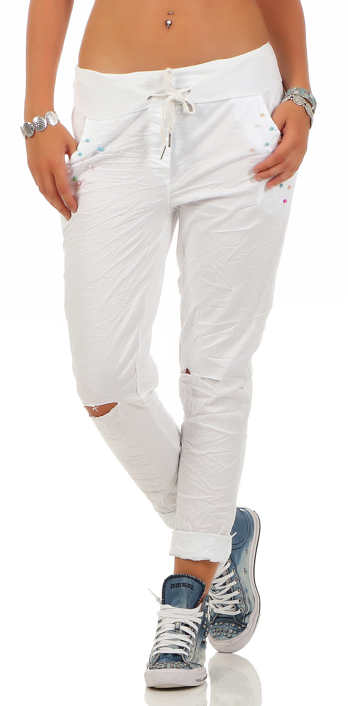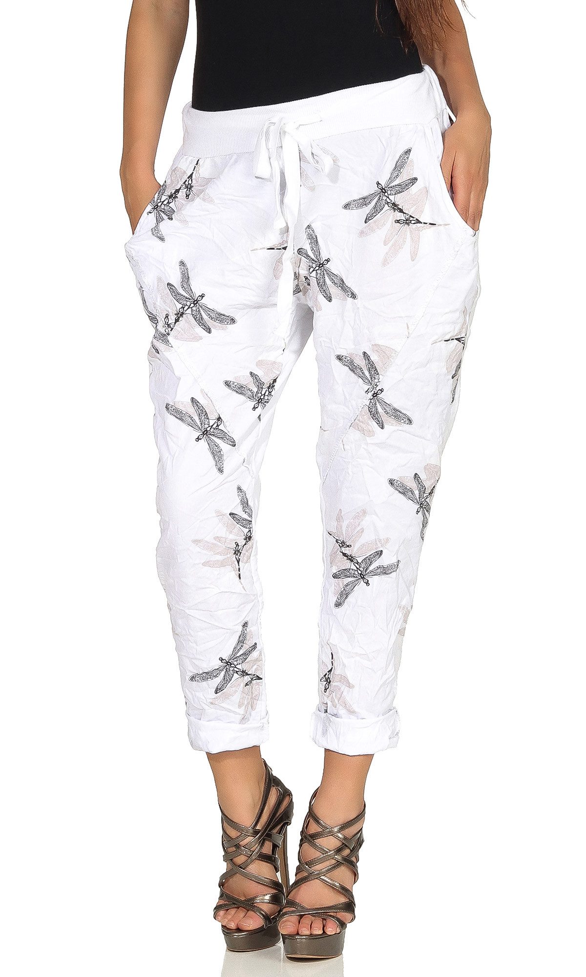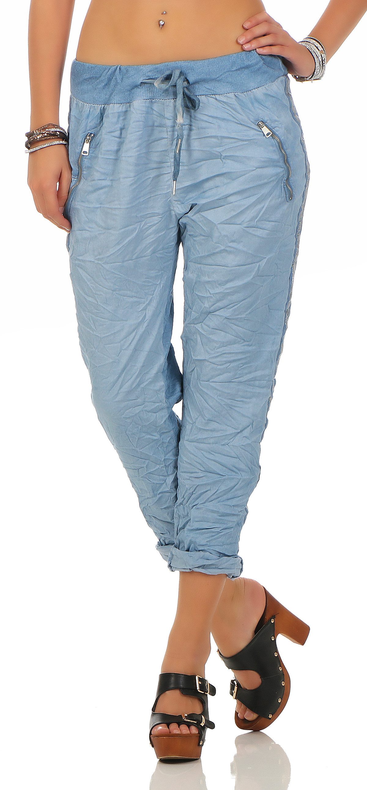 Diese wunderschöne Uni Freizeithose ist ein absolutes Must Have für jede Frau! Sie verleiht der Trägerin einen eleganten weiblichen Look ohne viel Aufwand und lässt sich somit zu Всеm kombinieren - ob in der Freizeit zu einem Basic Shirt oder zum Ausgehen mit High Heels und einer verspielten Bluse. Die Stoffhose sorgt durch den Tunnelzug für sehr viel Tragekomfort! Außerdem ist Textprint ein besonderer Hingucker und Eye-Catcher! Der breite Schnitt verleiht seiner Trägerin eine sehr feminine Ausstrahlung und in Kombination mit den hochgekrempelten Beinen umschmeichelt das Teil auch jede Figur. So sorgt sie zu jeder Jahreszeit und allen Temperaturen für ein wundervolles, bequemes Tragegefühl. Die Hose sind aus weichem Stoff. Ebenso hat die Freizeithose zwei Hosentaschen, die dem Teil eine lässige und sportliche Ausstrahlung verleihen. Der Stoff (62 % Viskose, 33 % Nylon, 5 % Elasthan und 95 % Baumwolle 5 % Elasthan ) ist qualitativ sehr komfortabel, weich und liegt angenehm locker luftig auf der Haut. Er erzeugt eine schönes warmes Tragegefühl selbst an kalten Tagen. BEACHTEN SIE BITTE BEI IHREM EINKAUF: Die Einheitsgröße entspricht den Deutschen Größen 36,38,40,42 (S, M, L, XL,).