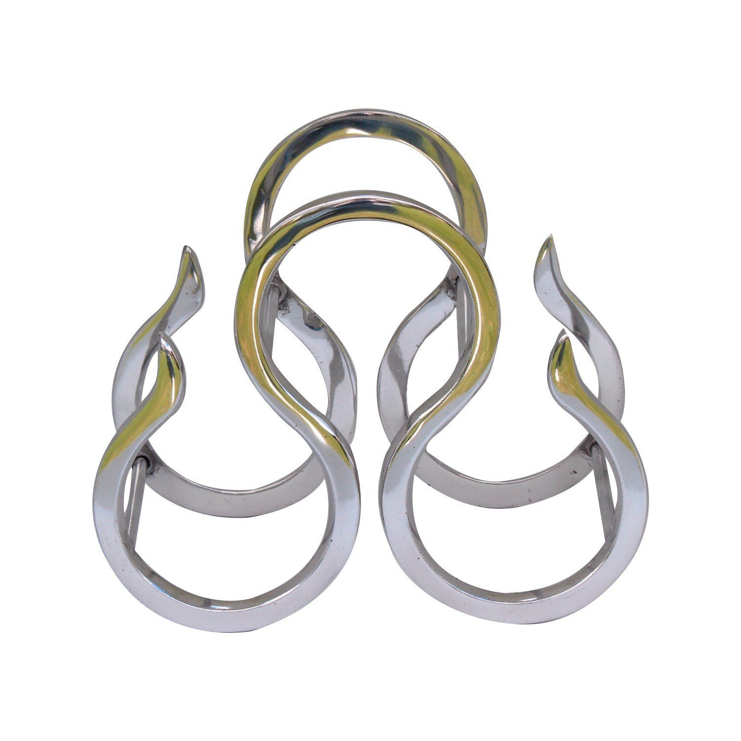 Der Weinflaschenhalter New York besteht aus zwei geschwungenen Bögen, die durch vier Stäben verbunden sind. Die Bögen haben jeweils drei runde Ausschnitte, in die man bis zu drei Flaschen platzieren kann.