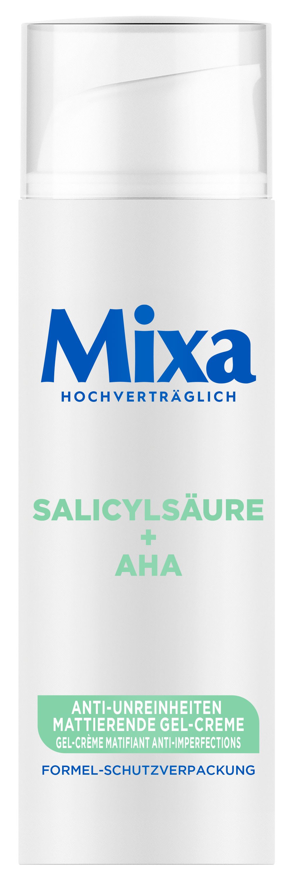 Die Anti-Unreinheiten mattierende Gel-Creme von Mixa ist eine leichte Gesichtscreme, die speziell für ölige, zu Unreinheiten neigende Haut entwickelt wurde. Dafür sind ihre Inhaltsstoffe optimal auf dieses Hautbedürfnis abgestimmt. So enthält die Gesichtspflege zum einen Salicylsäure sowie zum anderen AHA. In Kombination sorgen sie für ein bis zu acht Stunden anhaltendes ultra-mattes Hautbild, ohne die Haut auszutrocknen oder sie zu reizen. Gleichzeitig mildert die schonende und hochverträgliche Formel Pickelmale. Um die Wirksamkeit der Gel-Creme zu unterstützen, können zusätzlich der Anti-Unreinheiten Comfort Cleanser sowie das Anti-Unreinheiten Serum verwendet werden.