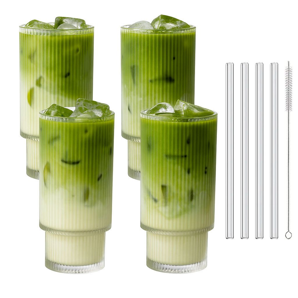Genießen Sie Ihre Lieblingsgetränke stilvoll – mit unserem eleganten 4er Set geriffelter Trinkgläser (320 ml) inklusive passender Glashalme. Ob Iced Matcha Latte, Latte Macchiato, Eiskaffee, Smoothies, Säfte oder Cocktails – diese Gläser setzen jedes Getränk perfekt in Szene. Die moderne, geriffelte Struktur sorgt nicht nur für einen trendigen Look, sondern liegt auch angenehm in der Hand. Dank der hochwertigen Glasqualität sind die Gläser langlebig, robust und spülmaschinengeeignet – ideal für den täglichen Gebrauch wie auch für besondere Anlässe.