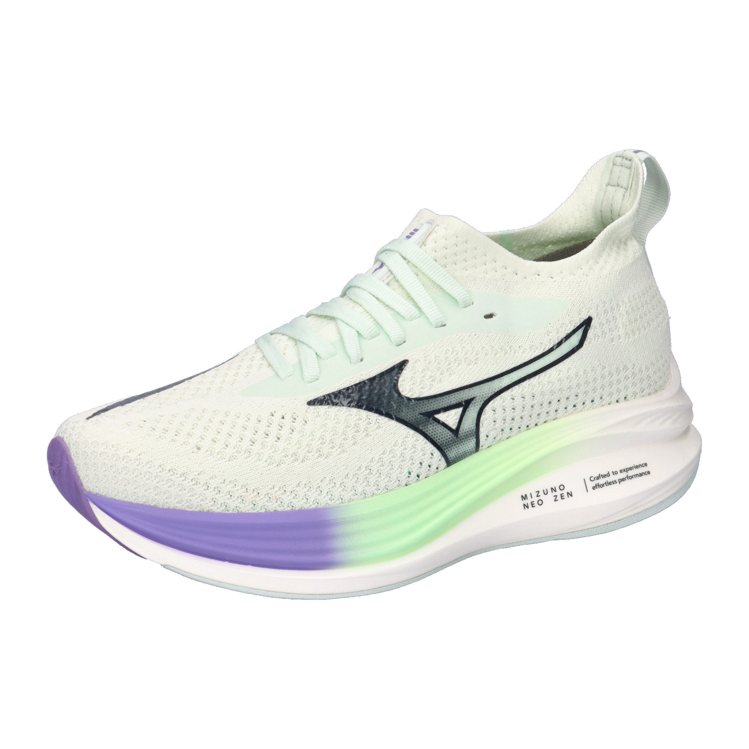 Mizuno Damen Laufschuhe Mizuno Neo Zen. Der Mizuno Neo Zen ist ein echter Allrounder. Der Schuh eignet sich hervorragend für Ihre täglichen Läufe, ist aber aufgrund seiner schnellen Beschaffenheit auch ideal für Ihr Tempo- und Intervalltraining. Der Neo Zen verfügt über Enerzy Nxt-Schaum in der Zwischensohle, um einen guten Vortrieb zu gewährleisten. Das Material dieses Schaumstoffs absorbiert den Aufprall und gibt Energie zurück. Durch die Injektion von Stickstoff anstelle von normaler Luft ist der Schaum noch weicher und reaktionsfreudiger als normal. Das runde Design der Sohle orientiert sich an Spikes, bei denen auch die Ferse stark erhöht ist. Dadurch können Sie bei Müdigkeit gut auf dem Mittel- und Vorfuß landen. Dies nennt sich Smooth Speed Assist, damit Sie bis zum Ziel weiterhin einen idealen Übergang hinlegen. Der Schuh hat ein gestricktes Obermaterial. Dadurch ist das Material nahtlos und kann sich mit dem Fuß in alle Richtungen dehnen. Das gestrickte Obermaterial verfügt über eine hohe Atmungsaktivität, sodass Ihre Füße kühl bleiben. Bei diesem Schuh ist die Unterseite der Ferse verstärkt, während die Oberseite flexibel, weich und bequem ist. Dadurch wird kein Druck auf Ihr Fersenbein ausgeübt. Die X10-Außensohle sorgt für Halt beim Laufen bei nassen und trockenen Bedingungen. Auch diese Außensohle ist auf eine lange Lebensdauer ausgelegt. Die X10-Außensohle besteht aus Carbon und bietet zusätzlichen Halt an strategischen Stellen. An der Ferse gibt es zusätzlichen Halt, um die Traktion zu erhöhen. Obermaterial: Textil, sonstiges Material. Futter und Decksohle: Textil. Laufsohle: Sonstiges Material.