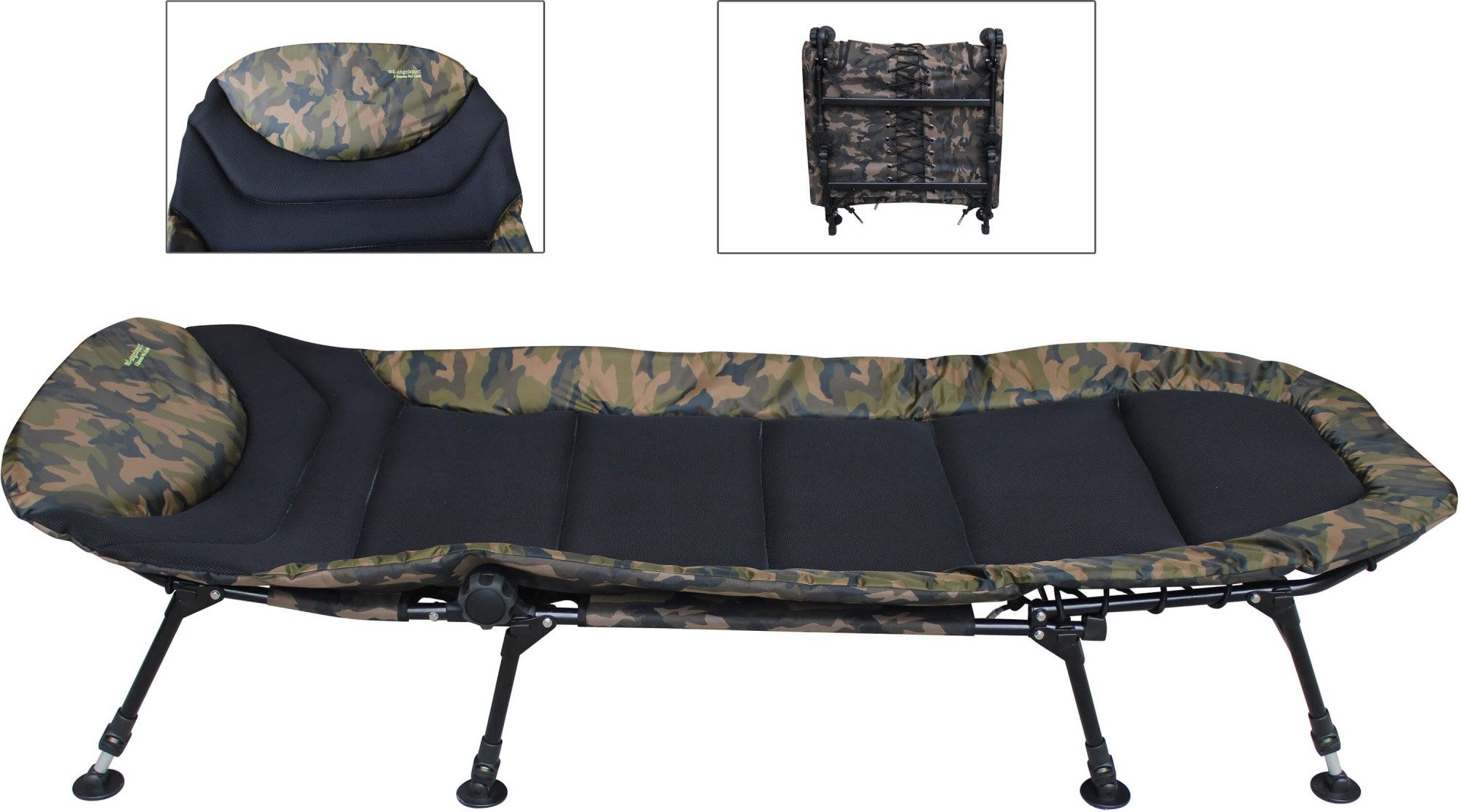Die MK 5 Seasons Camou Pro Deluxe 8-Bein Karpfenliege ist die perfekte Wahl für alle anspruchsvollen Angler. Mit einem Gewicht von nur 10 Kilogramm ist die Angelliege super leicht und dennoch äußerst stabil.