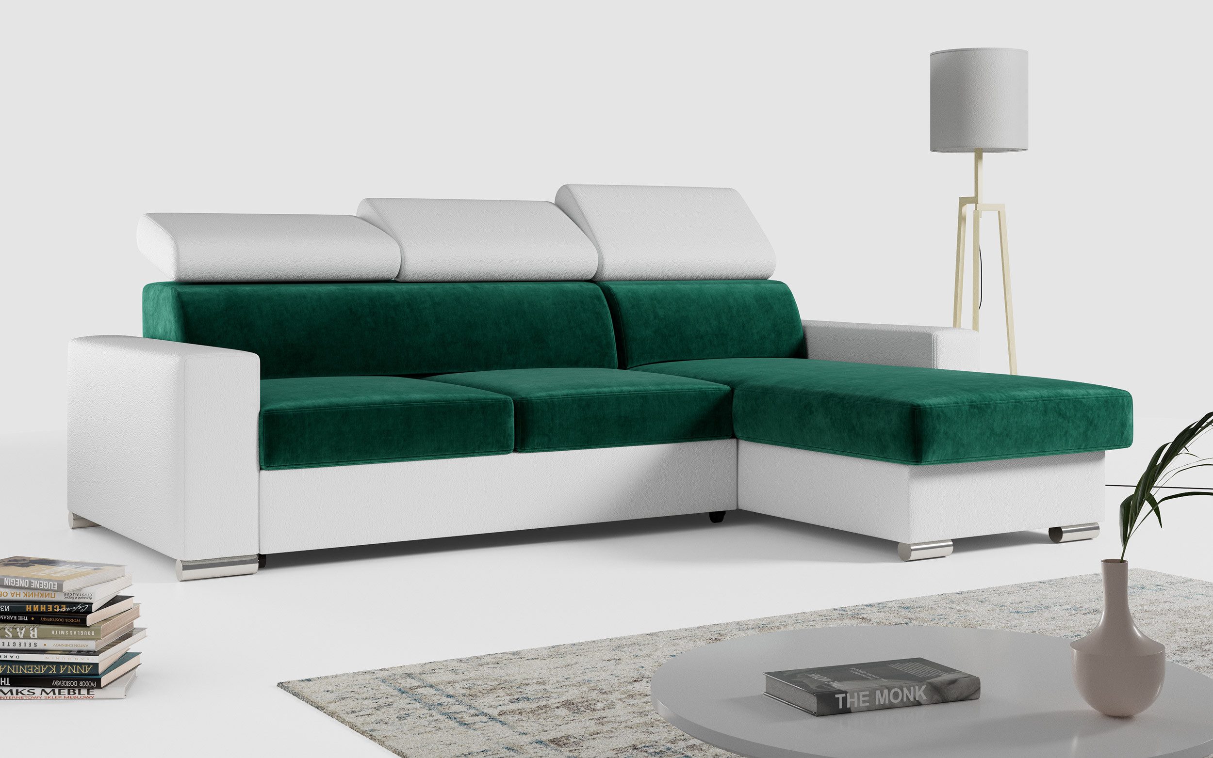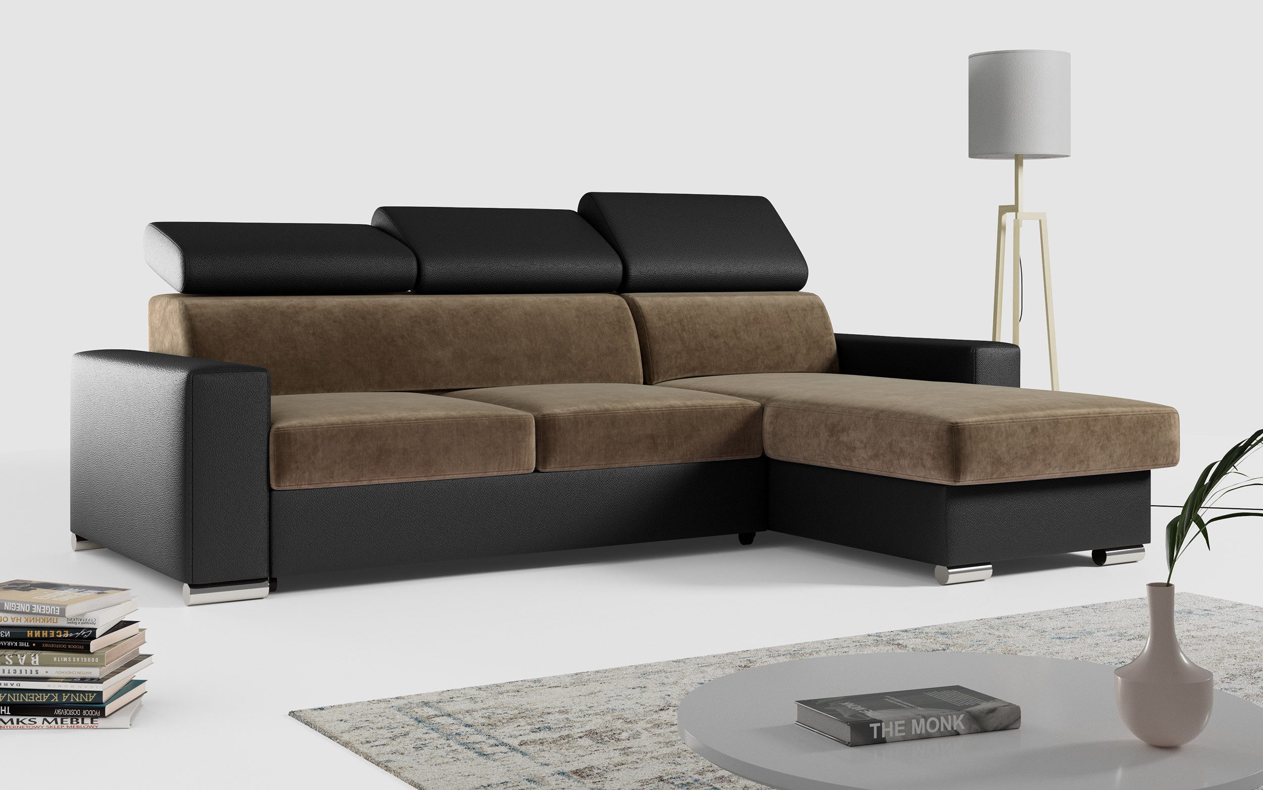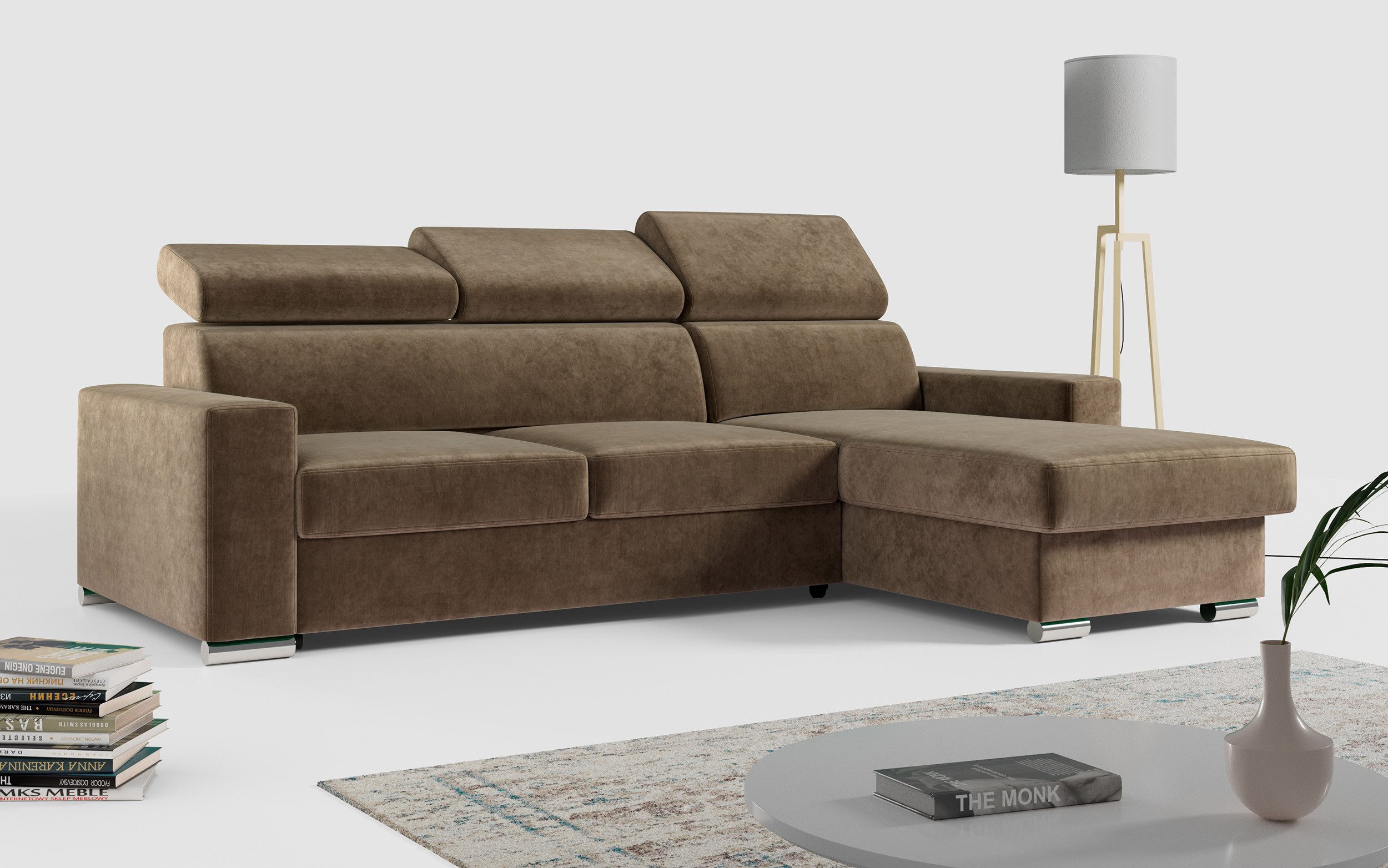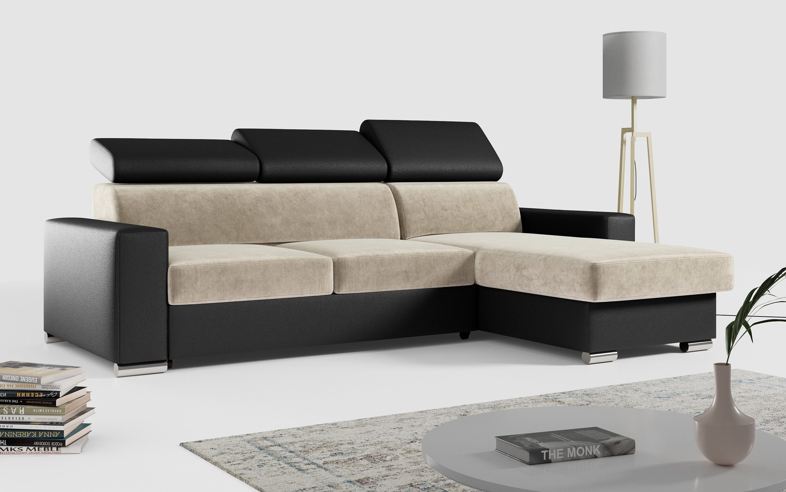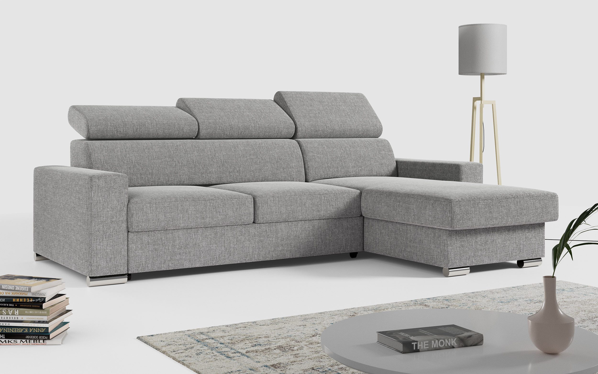 Die Ecksofabeine sorgen für eine solide Konstruktion und ein modernes Aussehen. Ein großer Vorteil dieses Modells ist seine universelle Bauweise – die Ausrichtung des L-förmige Ecke (links oder rechts) wird erst beim Aufbau bestimmt, sodass es flexibel an verschiedene Raumgegebenheiten angepasst werden kann.