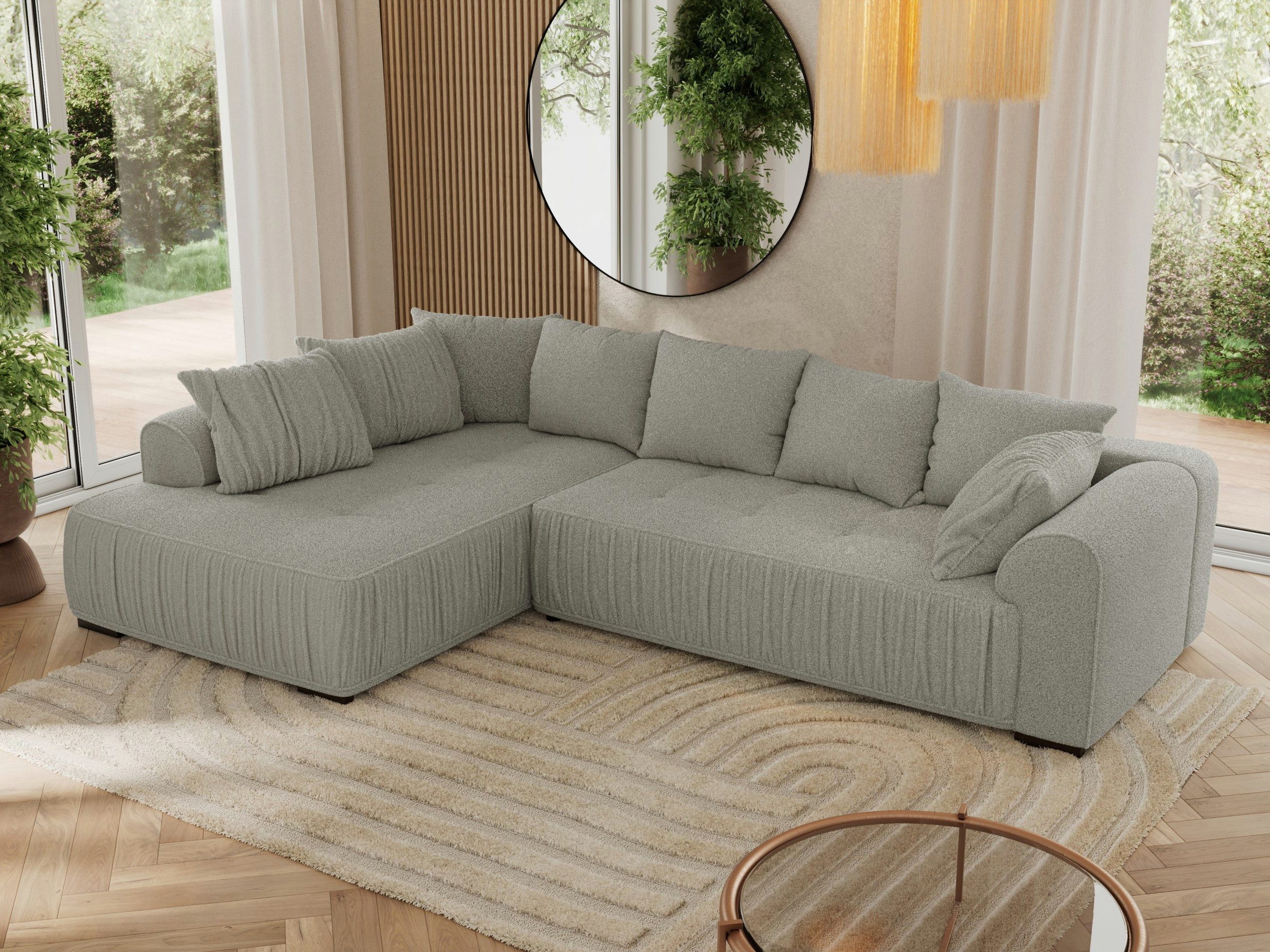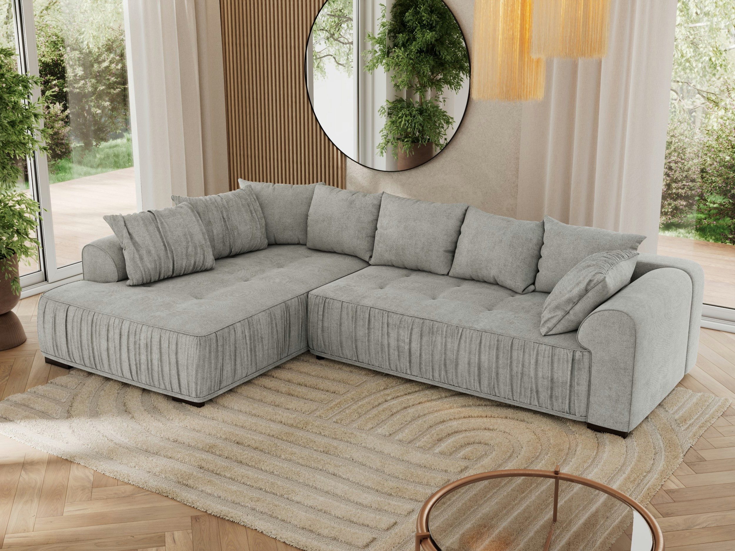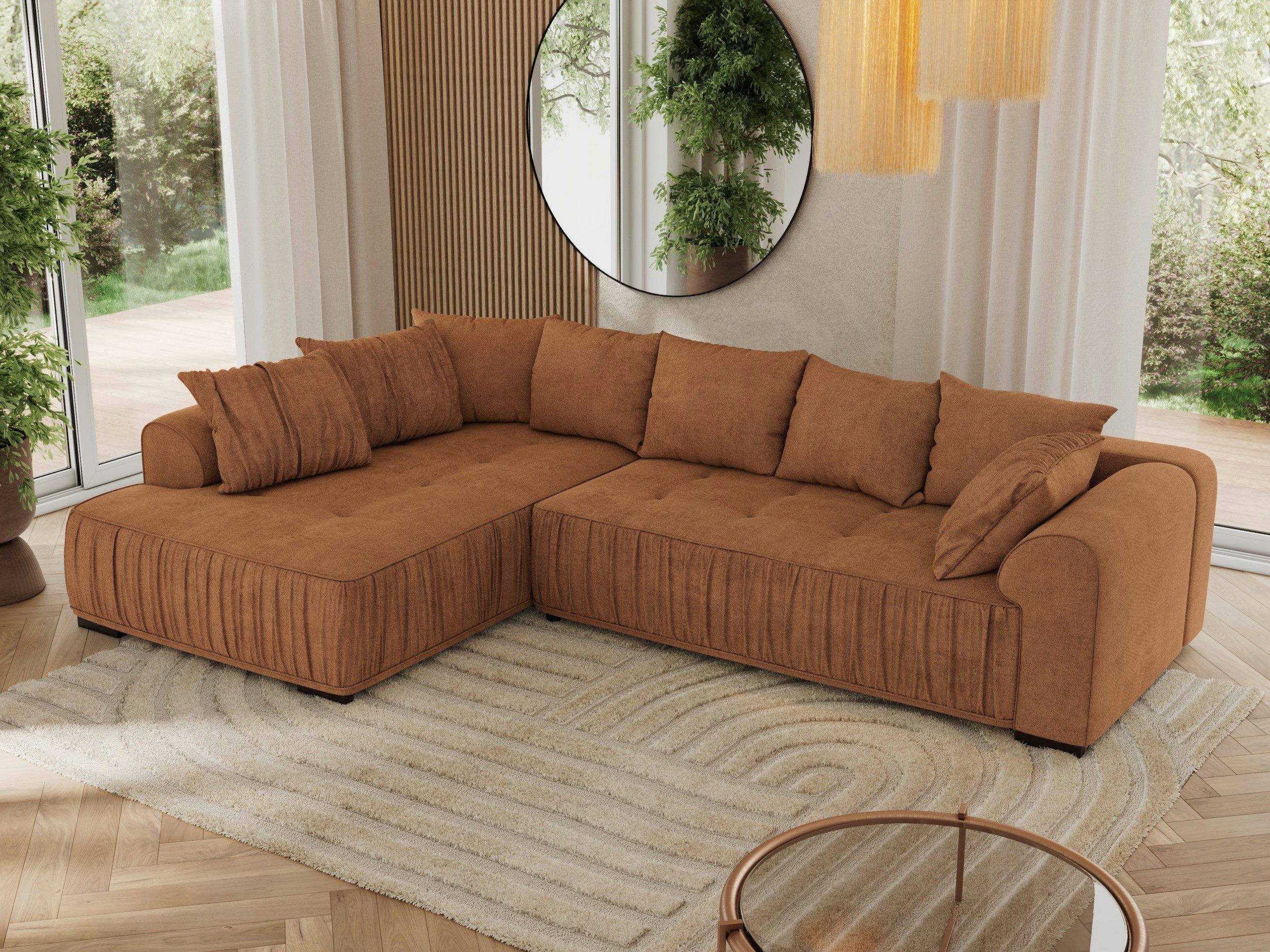 Das Ecksofa ORTA besticht durch sein elegantes Design, das sowohl Stil als auch Vielseitigkeit bietet. Die Ausrichtung des Eckteils – links oder rechts – kann bei der Bestellung angegeben werden, sodass die Schlafcouch perfekt in Ihren Raum passt. Dank hochwertigem Polyurethanschaum und Wellenfedern sorgt die L-förmige Ecke für langanhaltenden Sitzkomfort. Auch bei intensiver Nutzung behält sie ihre Form bei.