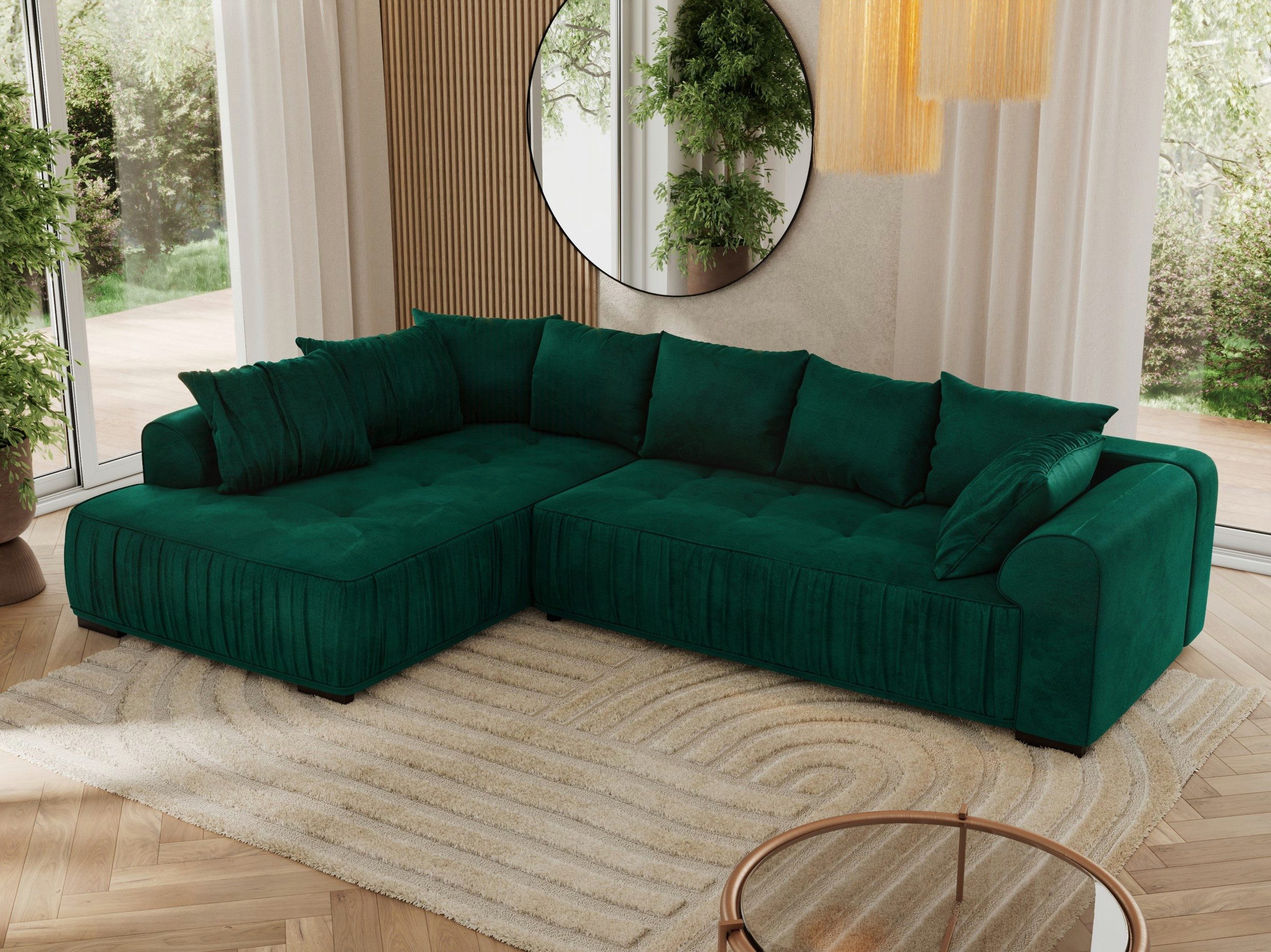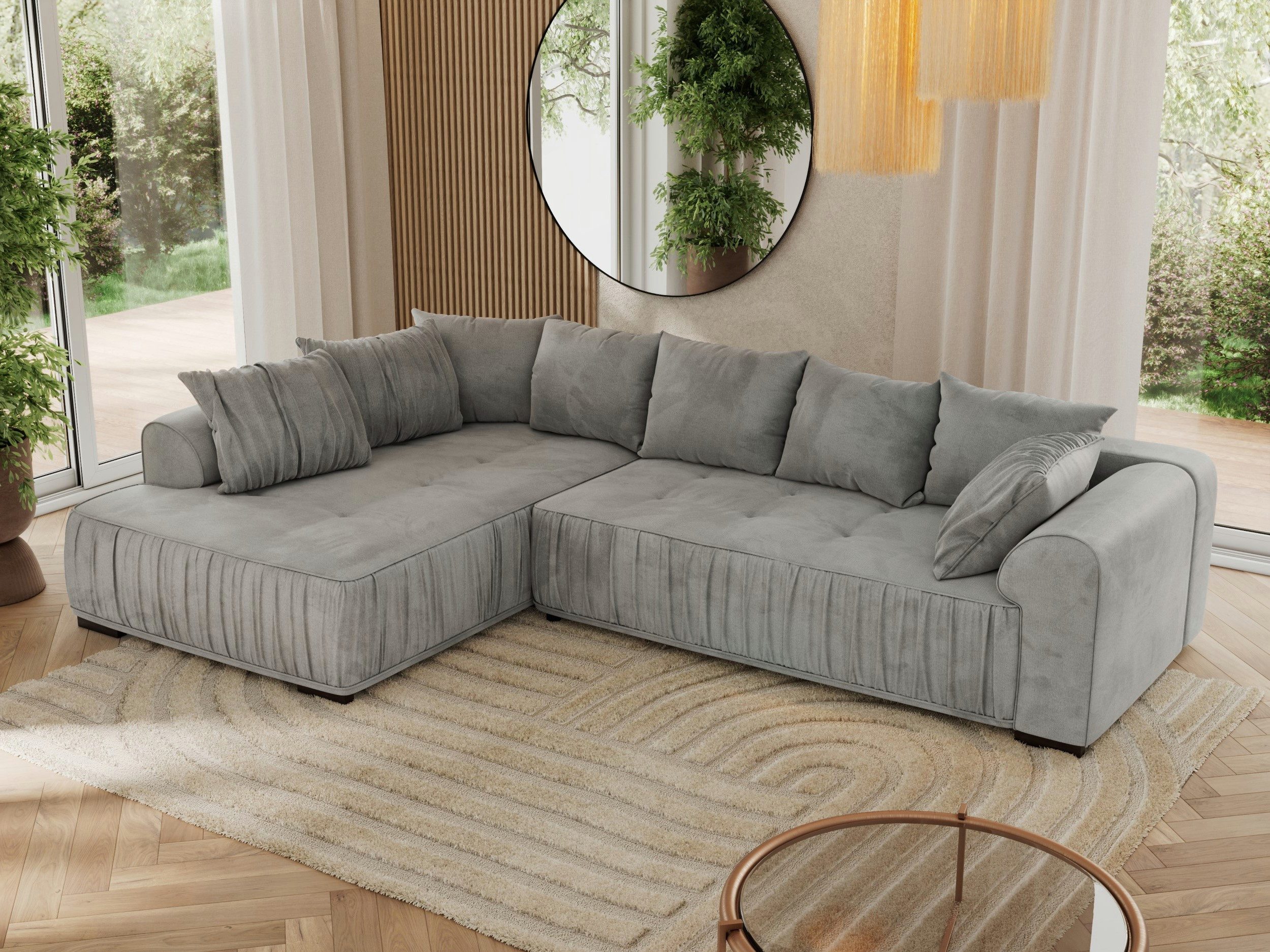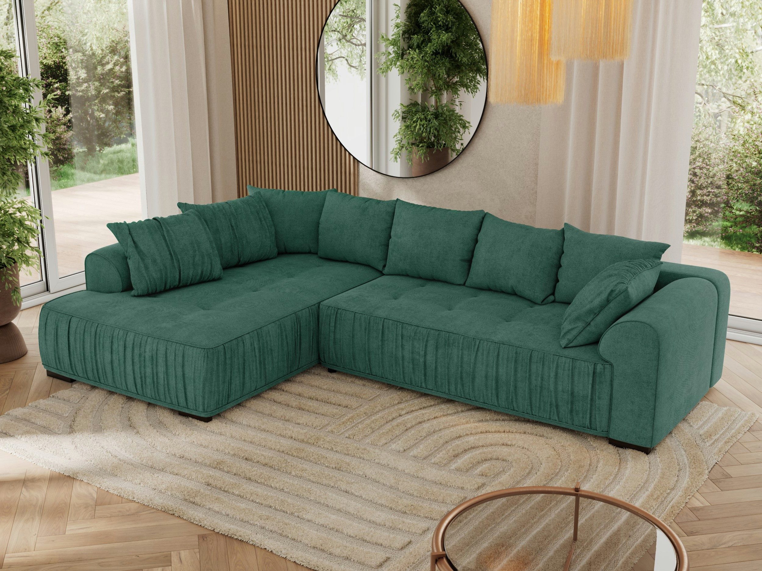 Das Ecksofa ORTA besticht durch sein elegantes Design, das sowohl Stil als auch Vielseitigkeit bietet. Die Ausrichtung des Eckteils – links oder rechts – kann bei der Bestellung angegeben werden, sodass die Schlafcouch perfekt in Ihren Raum passt. Dank hochwertigem Polyurethanschaum und Wellenfedern sorgt die L-förmige Ecke für langanhaltenden Sitzkomfort. Auch bei intensiver Nutzung behält sie ihre Form bei.