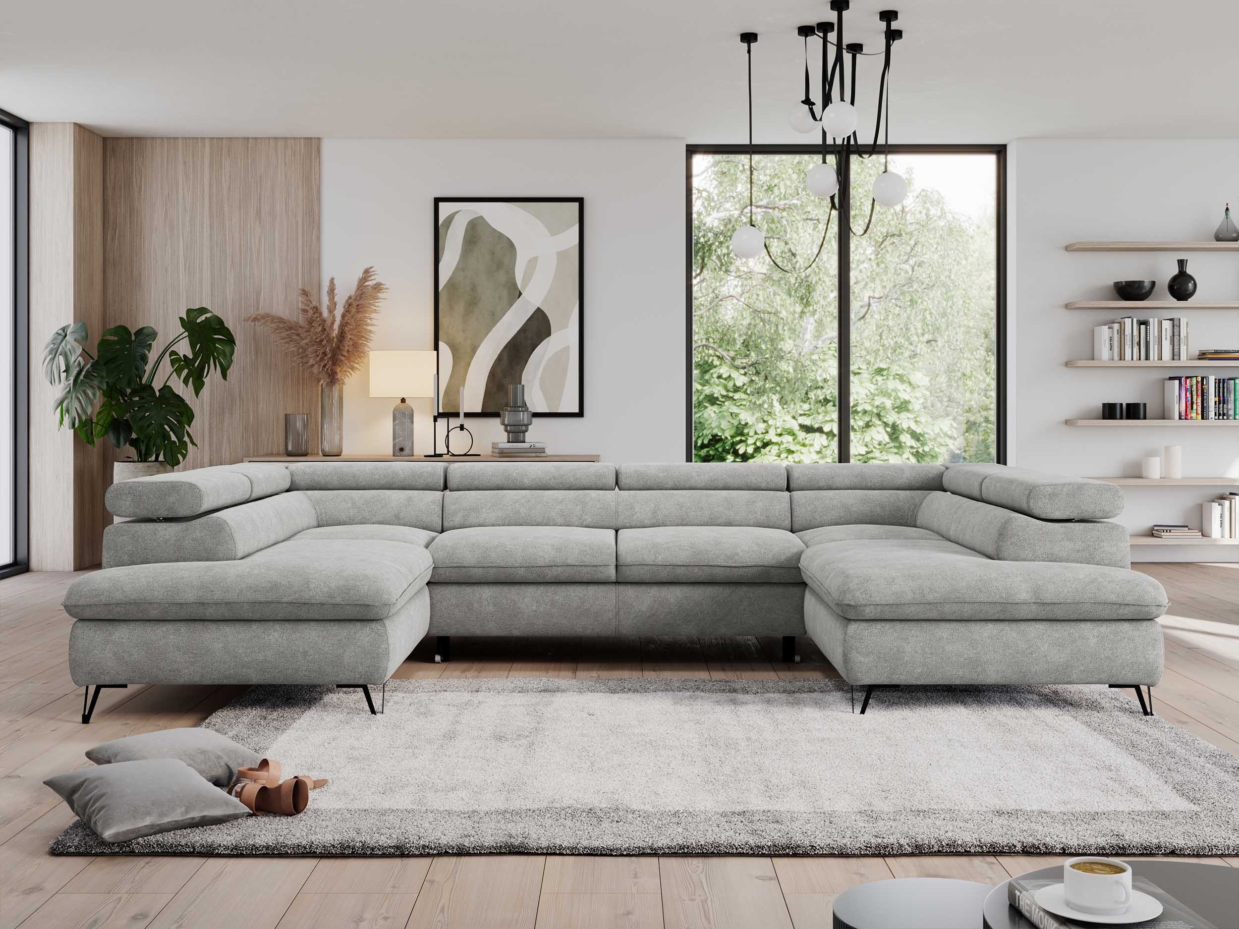 Das Ecksofa PEDRO U beeindruckt durch seine moderne U-Form, die nicht nur viel Platz bietet, sondern auch optisch ein Highlight in jedem Wohnzimmer ist. Sofa mit Schlaffunktion und Bettkasten ist die perfekte Wahl für Menschen, die Wert auf Stil, Komfort, aber auch viel Platz zum Entspannen legen.