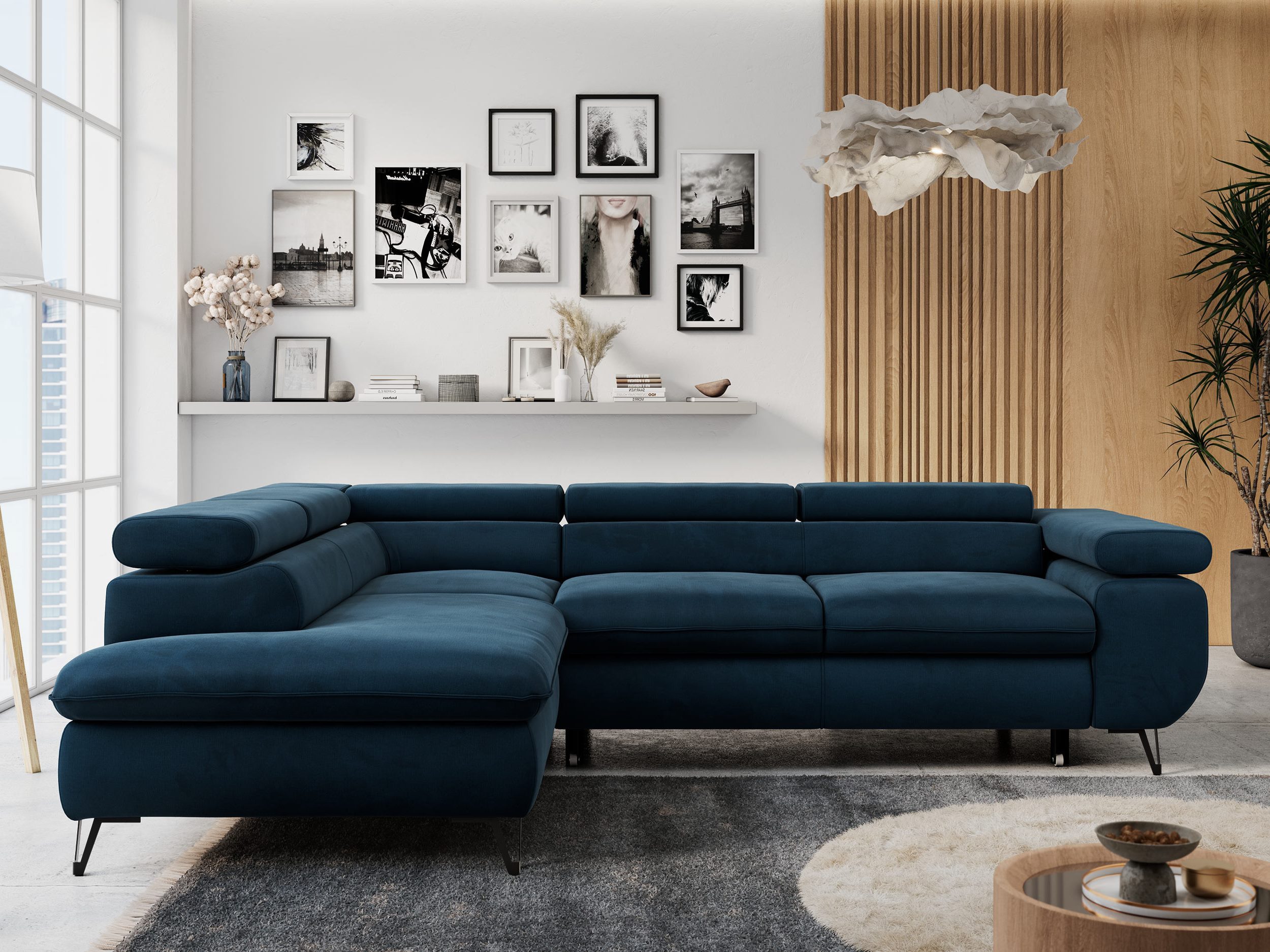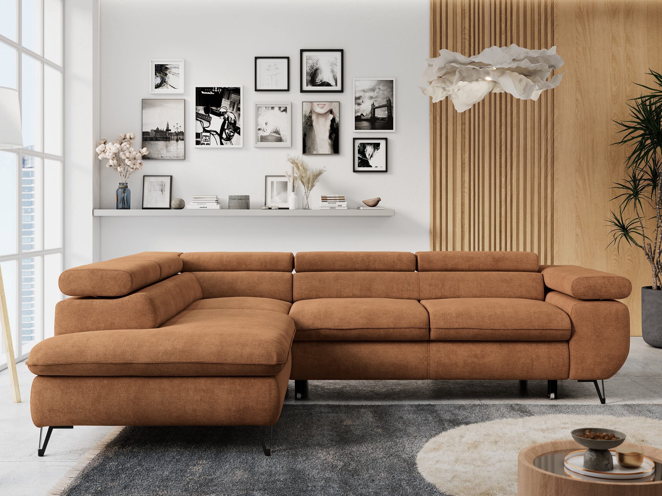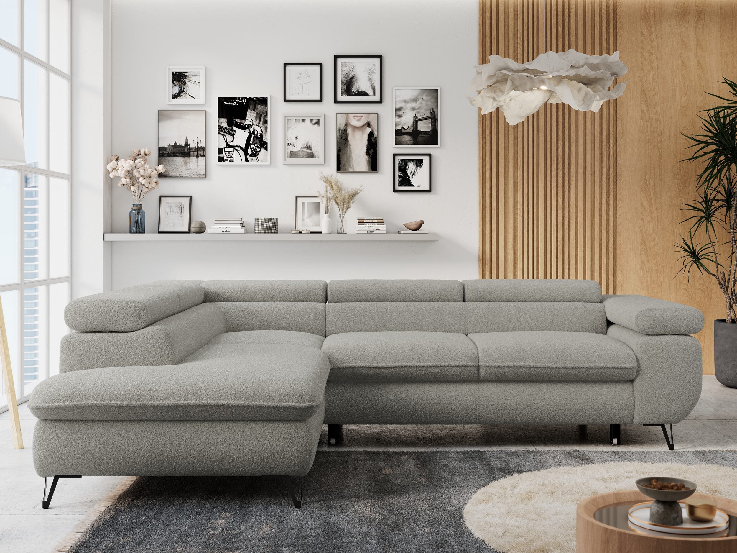 Die L-förmige Ecke verfügt über einen praktischen Bettkasten, der ausreichend Stauraum. Die integrierte Schlaffunktion mit einem Delfin-Mechanismus ermöglicht ein einfaches und schnelles Ausklappen zu einer bequemen Liegefläche – ideal für Gäste oder den täglichen Gebrauch.