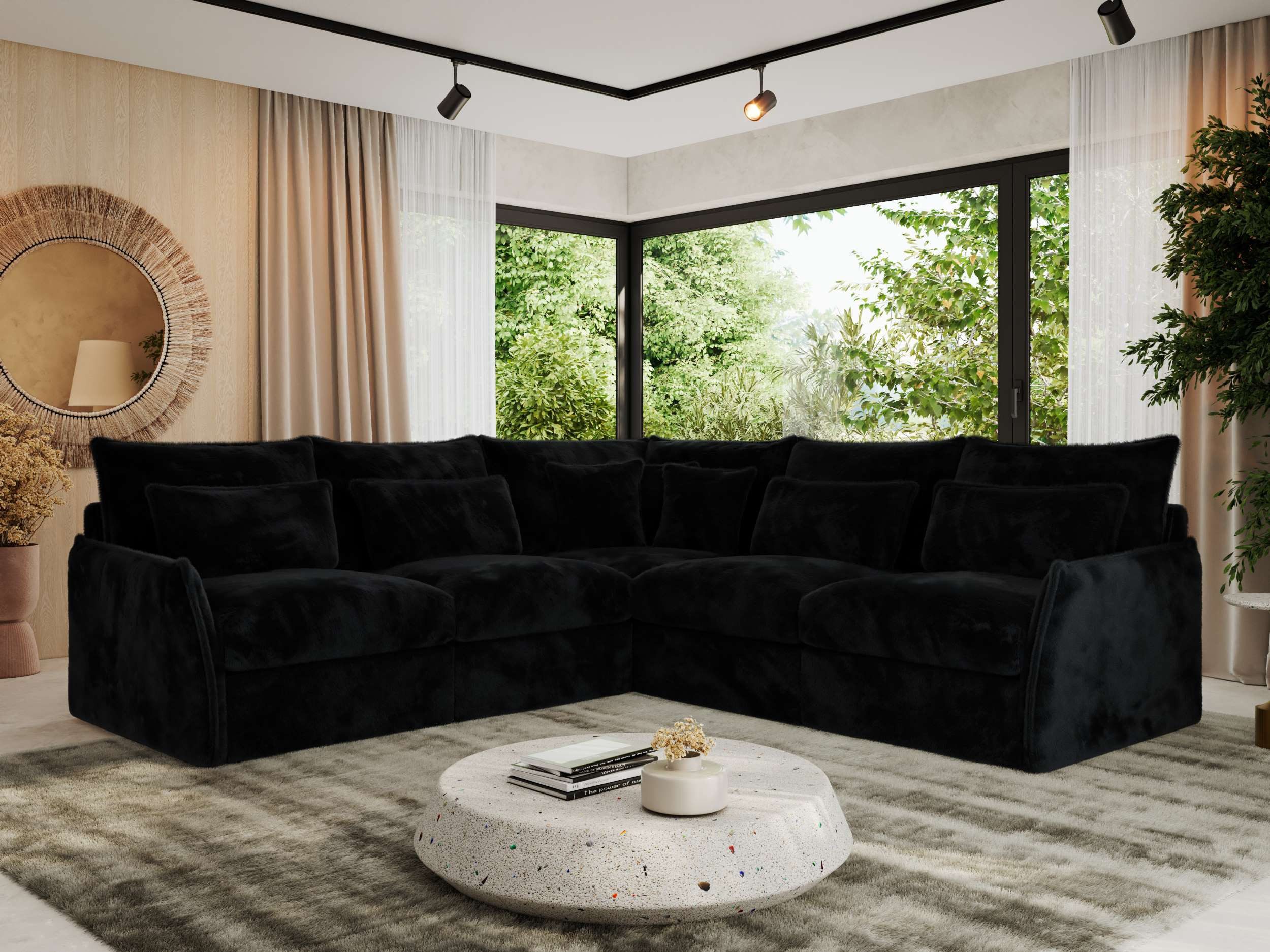 Dank der vollumpolsterten Rückenlehne lässt sich das Sofa für das Wohnzimmer frei im Raum positionieren – eine ideale Lösung für moderne, offene Wohnräume. Die schwarzen Kunststoffbeine sind bereits vormontiert und bedürfen keiner weiteren Montage. So können Sie ohne großen Aufwand Freude an Ihrem neuen Sofa L-Form haben.