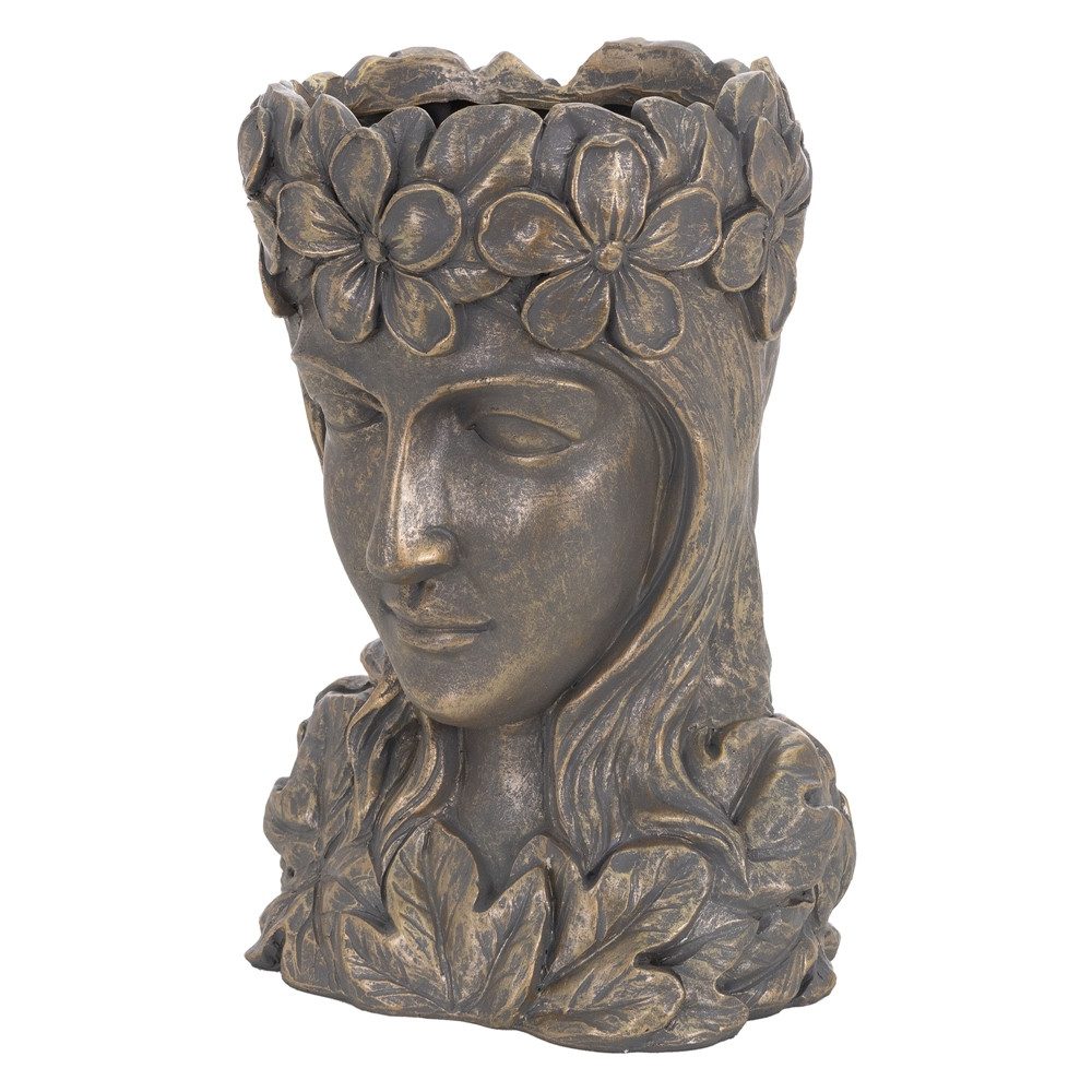 Ausgestattet mit vielen kleinen Details ist der liebevoll gestaltete Blumentopf ein dekoratives Highlight und auch ein perfektes Geschenk. Weiblich anmutende Büste mit Blätterkranz zum Bepflanzen mit Topfpflanzen und Rankpflanzen.