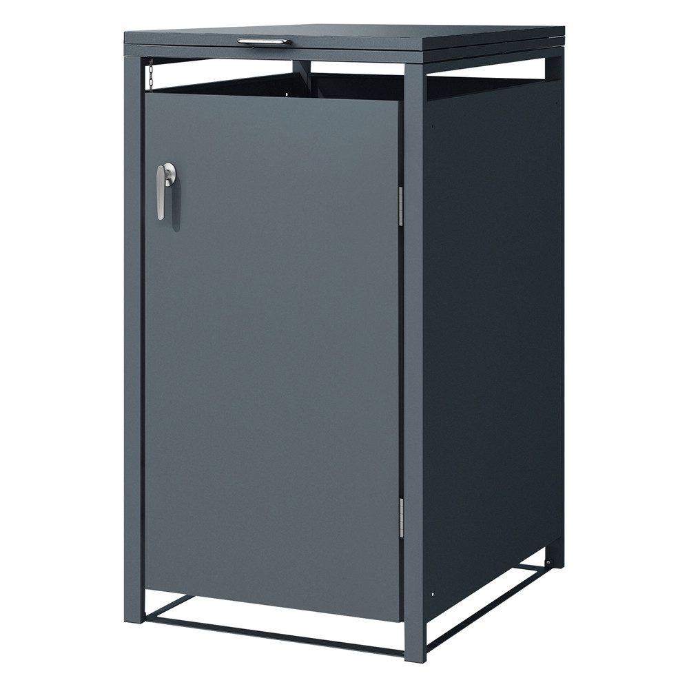Diese Mülltonnenbox besteht aus Stahlblech und einem Rahmen, wodurch sie äußerst robust und rostfrei ist. Zudem erhält die Mülltonnenbox eine Pulverbeschichtung mit Struktur im Farbton Anthrazit-grau. Die hochwertige Pulverbeschichtung verleiht der Mülltonnenbox nicht nur Ihren edlen Look, sondern auch eine sehr wertige Haptik. Zudem ist die Pulverbeschichtung kratzunempfindlich.