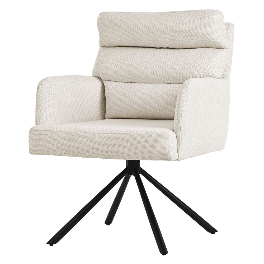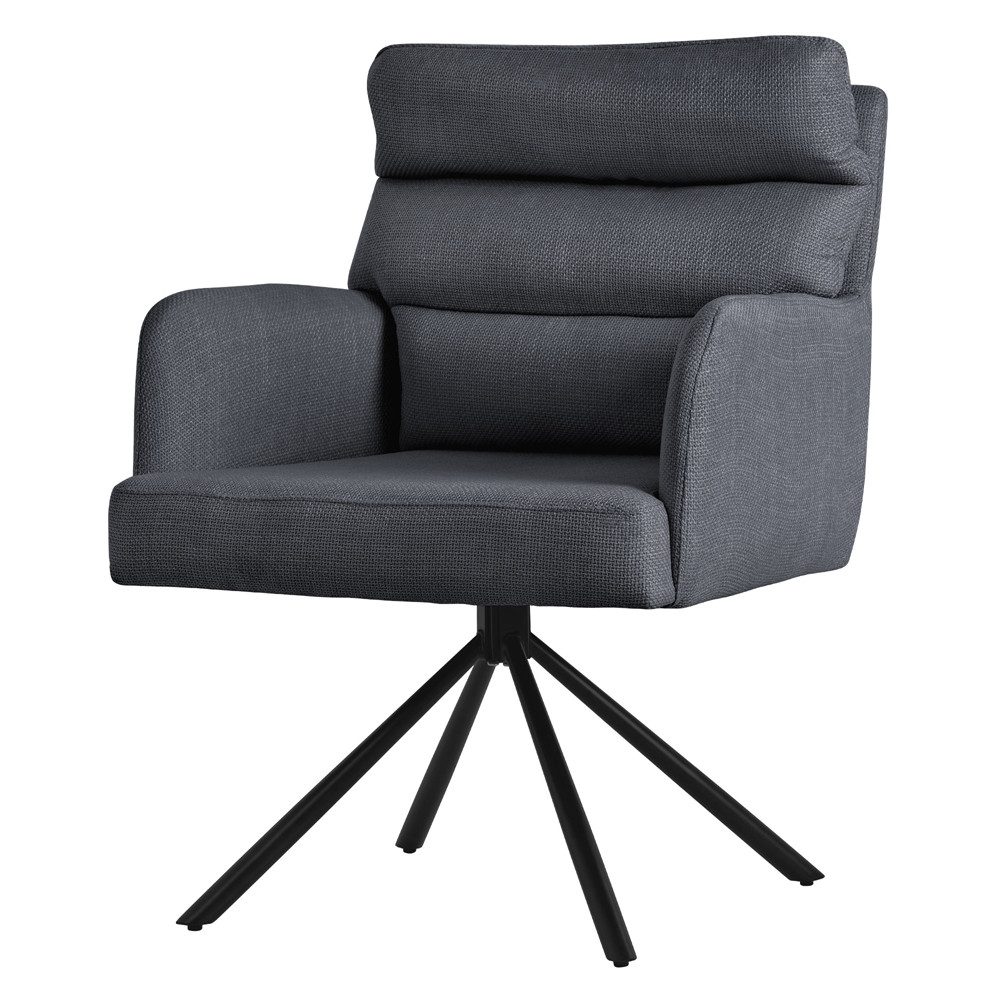 Komfort in Vollendung: Die Rückenlehne und die Armlehnen bieten nicht nur ergonomische Unterstützung, sondern verleihen dem Stuhl auch eine moderne Ästhetik. Der weiche Bezug rundet das Ganze ab und sorgt für ein luxuriöses Sitzgefühl.