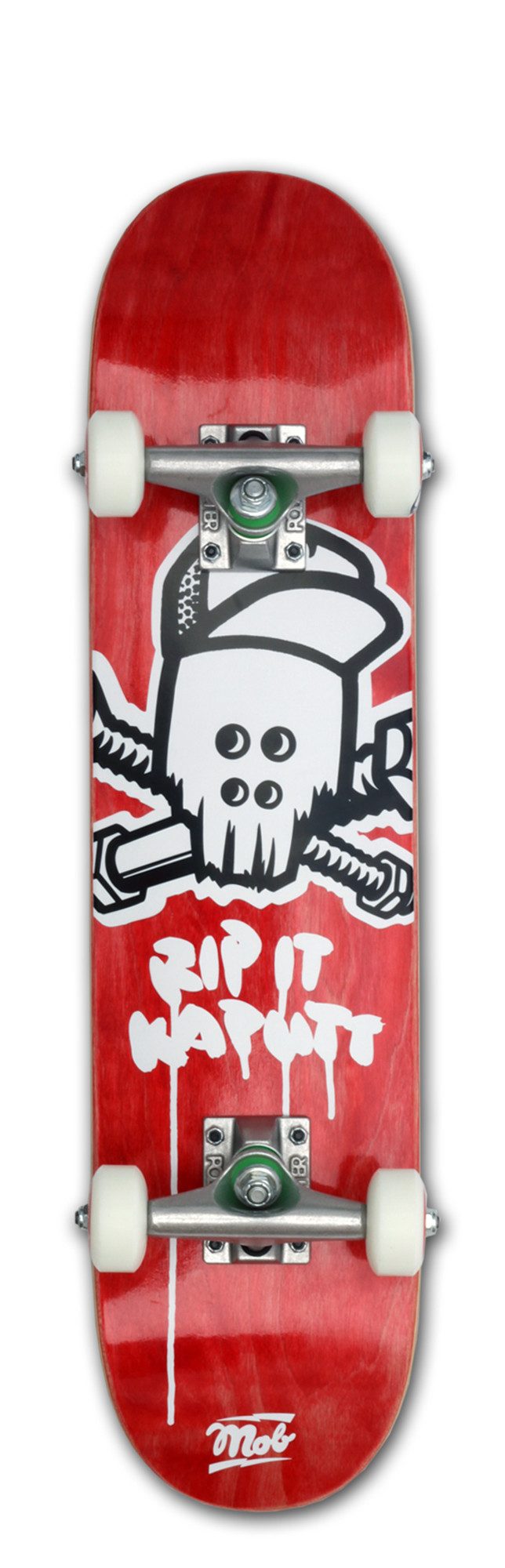 Der auffällige Totenkopf mit Schrauben als Kreuz auf der Rückseite des Decks sorgt für einen coolen Look, der sich von anderen Skateboards abhebt. Unter dem Skull findest du die Schrift „RIP IT KAPUTT“ in einem einzigartigen Verlauf, das klassische MOB-Design für die echte Skateboarder-Seele. Dieses Design wird dich beim Skaten nicht nur funktionell, sondern auch optisch begeistern.
