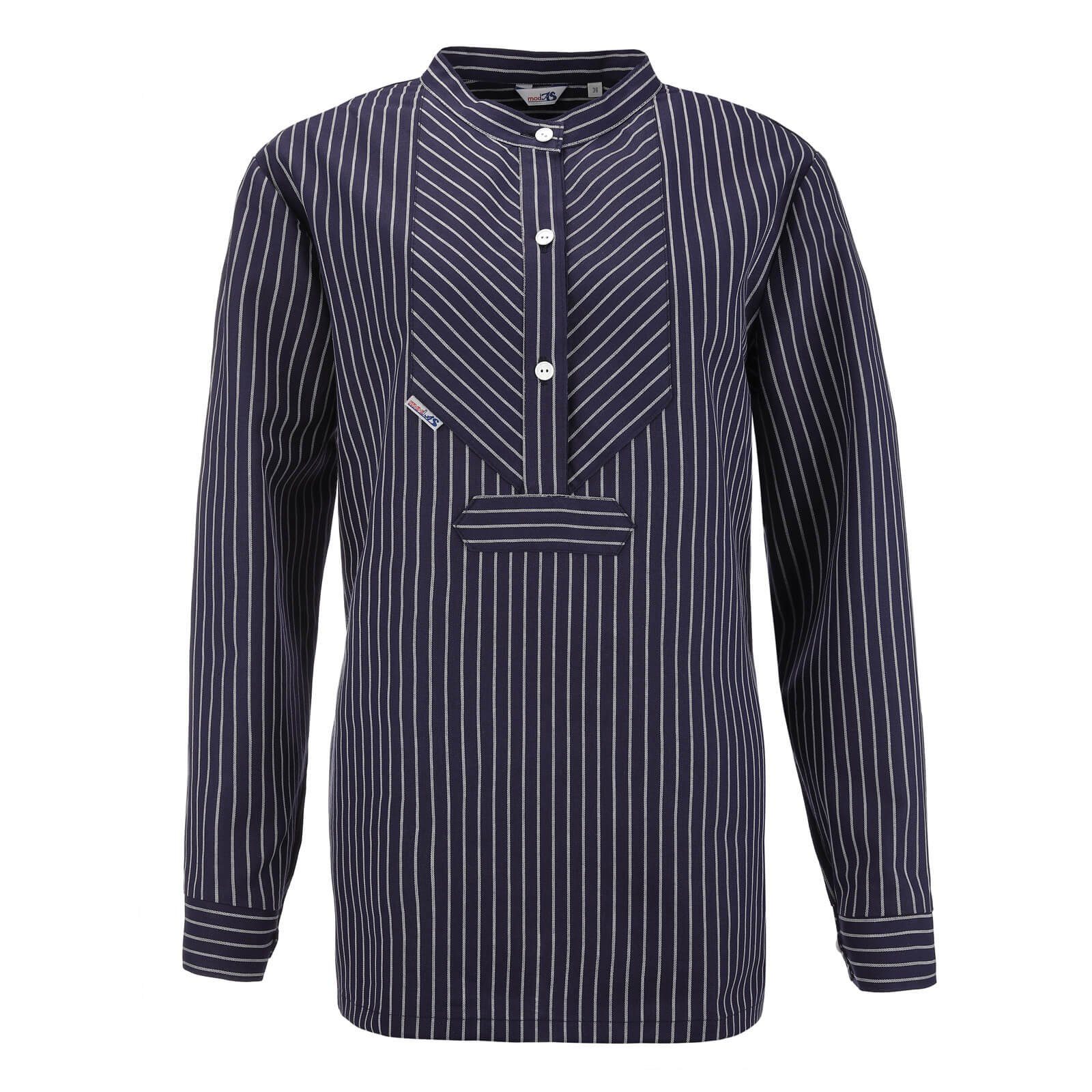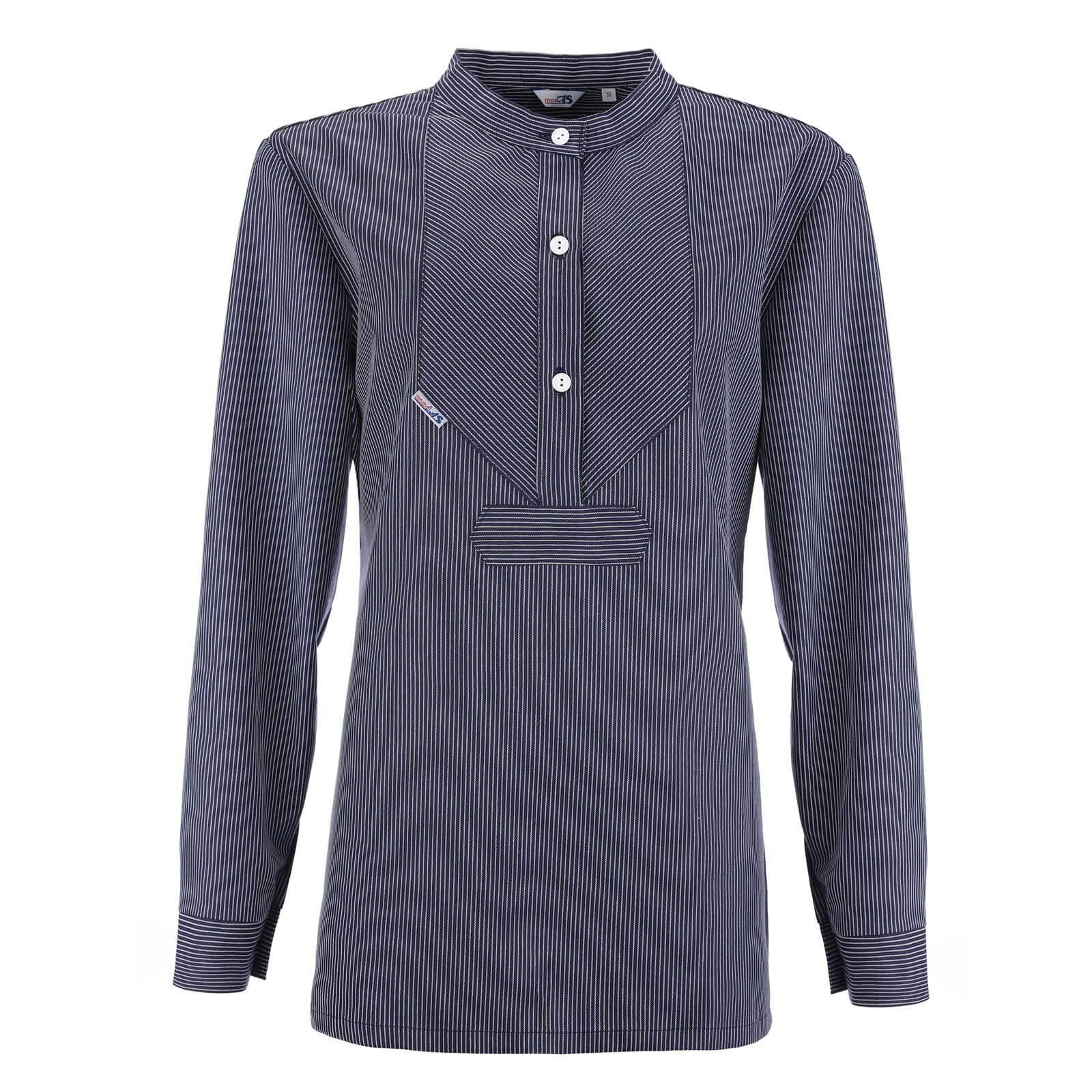 Ein zeitloser Klassiker im traditionellen Finkenwerder-Stil, der den Charme des Nordens in jeden Kleiderschrank bringt. Lassen Sie sich von der Einfachheit und Eleganz dieses Designs verzaubern. Dieses Hemd hat eine optimierte Schnittführung für Damen und bietet so eine optimale Passform und höchsten Tragekomfort. Die halbe Knopfleiste und der Stehkragen sind nicht nur modische Highlights, sondern erlauben auch vielfältige Styling-Möglichkeiten – ob leger geöffnet oder geschlossen für einen formellen Look. Hergestellt aus 100% buntgewebter Baumwolle mit einem Gewicht von ca. 190 g/m², verspricht dieses Hemd ein weiches Tragegefühl und Langlebigkeit. Die Ärmelbündchen runden das Design perfekt ab und sorgen für einen harmonischen Gesamtlook.