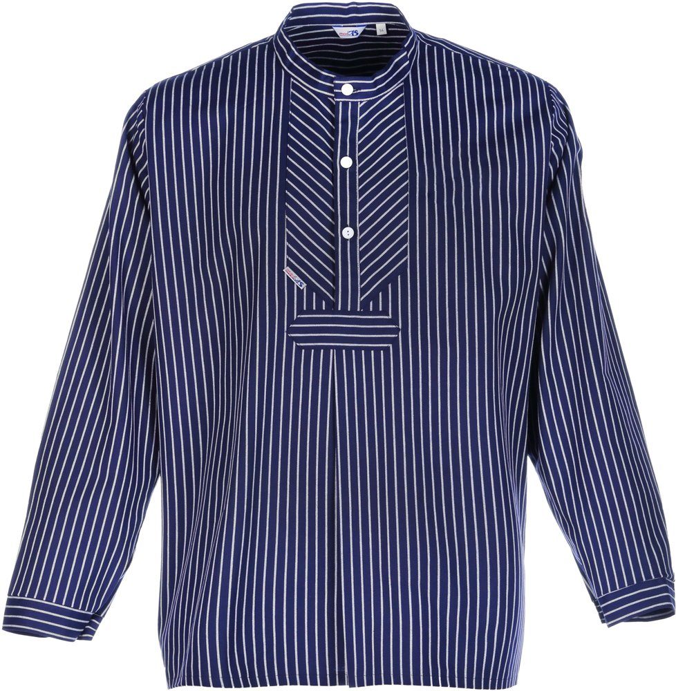 Gefertigt aus langlebigem Twill, besticht das Hemd durch seine 100% reine Baumwollqualität. Dies garantiert nicht nur Langlebigkeit, sondern auch hohen Tragekomfort. Das charakteristische Streifenmuster ist sorgfältig durchgewebt, nicht bloß aufgedruckt, was dem Hemd eine authentische und hochwertige Ausstrahlung verleiht. Inspiriert vom klassischen Finkenwerder-Stil, verbindet dieses Hemd zeitlose Eleganz mit Funktionalität. Die halbe Knopfleiste, gepaart mit stilvollen Ärmelbündchen und einem markanten Stehkragen, unterstreicht den maritimen Charakter und sorgt für eine ansprechende Optik. Dank der sorgfältigen Verarbeitung und dem Schnitt bietet das Fischerhemd eine ausgezeichnete Bewegungsfreiheit, ohne dabei an Eleganz zu verlieren. Egal ob bei der Arbeit, in der Freizeit oder bei besonderen Anlässen, dieses Hemd passt sich jeder Situation an und lässt Sie stets gut angezogen wirken. Das Hemd ist in einer breiten Palette an Größen verfügbar, wobei Herren-Размер 42 - 66 der Damen-Размер 36 - 60 entspricht.