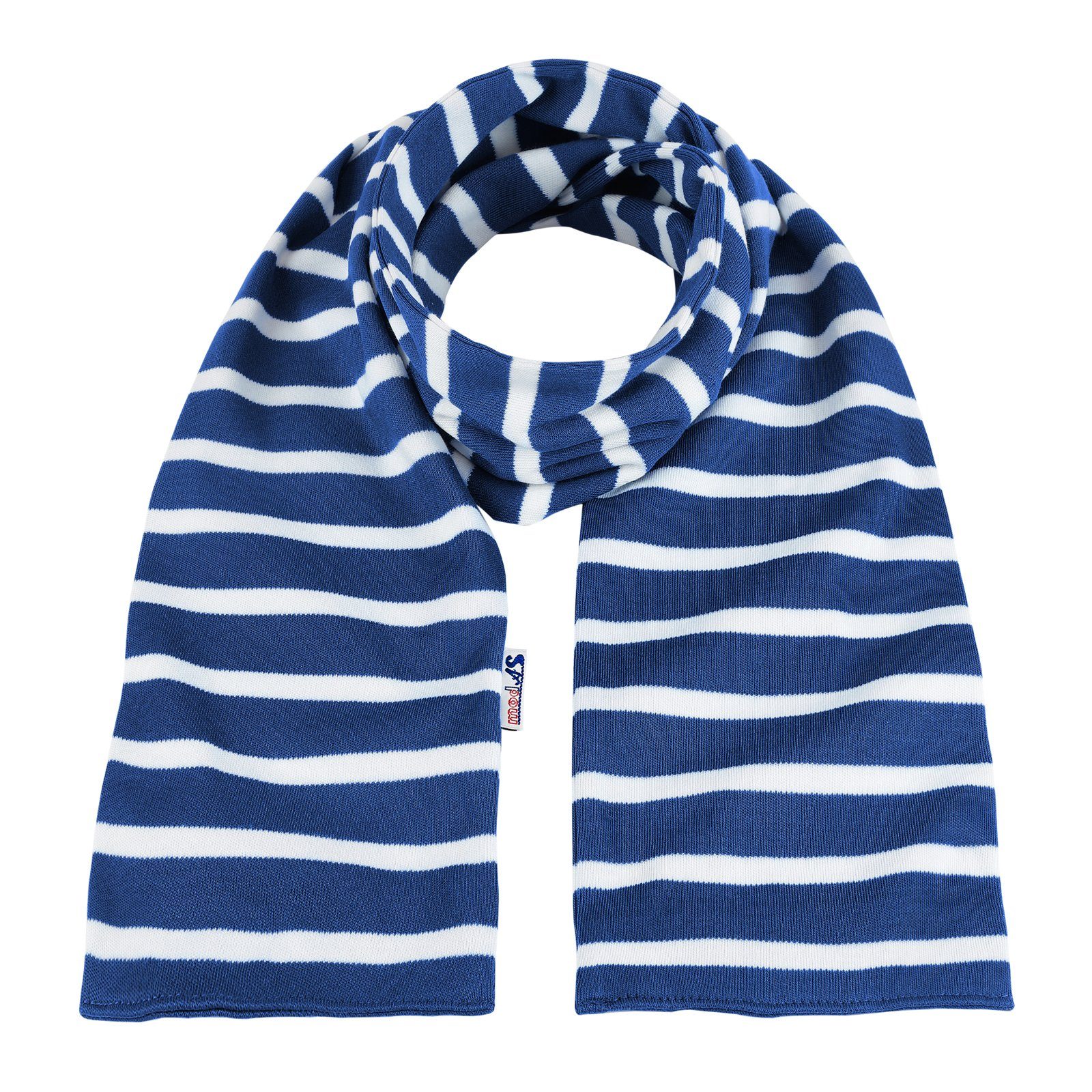 Der Schal präsentiert sich in einem charakteristischen geringelten Muster auf beiden Seiten, was ihm eine spielerische und doch elegante Note verleiht. Dieses markante Design macht den Schal zu einem vielseitigen Begleiter, der sich mühelos mit verschiedenen Outfits kombinieren lässt – egal ob als eleganter Akzent zu formeller Kleidung oder als lässiges Accessoire für den Alltag. Hergestellt aus 100% elastisch gewirkter Baumwolle, bietet der Schal einen hohen Tragekomfort. Die elastische Qualität der Baumwolle sorgt dafür, dass der Schal sanft um den Hals liegt, ohne zu kratzen oder einzuengen, und bietet so ein angenehmes Tragegefühl den ganzen Tag über. Die Kombination aus zeitlosem Design und hochwertigen Materialien macht diesen Unisex-Schal zu einem langlebigen Accessoire, das Sie über viele Saisons hinweg begleiten wird. Er eignet sich perfekt für diejenigen, die einen klassischen Look mit einem Hauch von maritimer Eleganz schätzen.