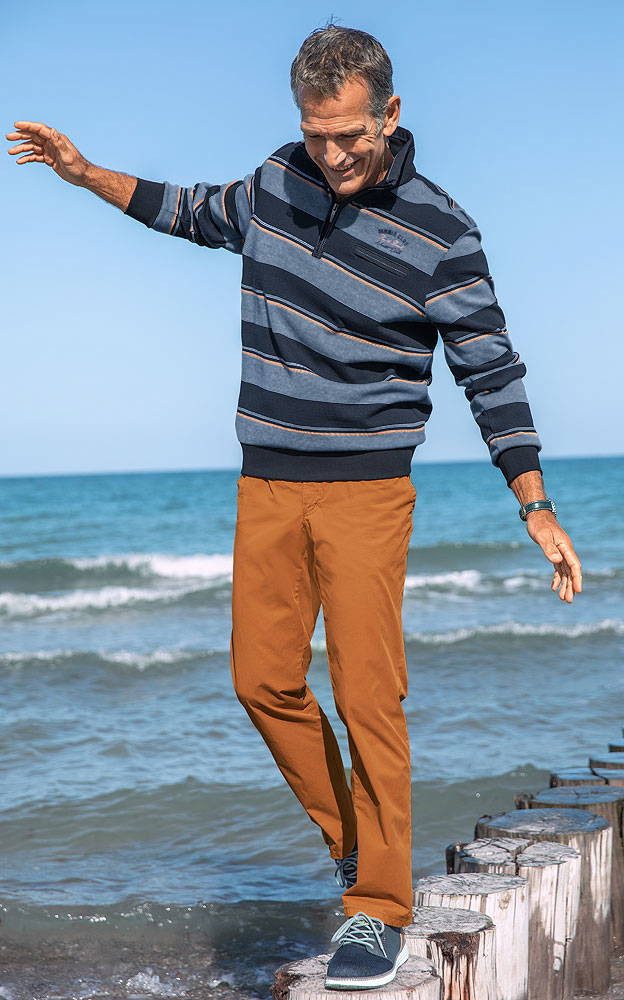 Der Monte Carlo Streifensweater ist die ideale Wahl für modebewusste Herren, die Wert auf Qualität und Stil legen. Seine durchdachte Konstruktion und die ansprechende Optik machen ihn zu einem vielseitigen Begleiter für verschiedene Anlässe.