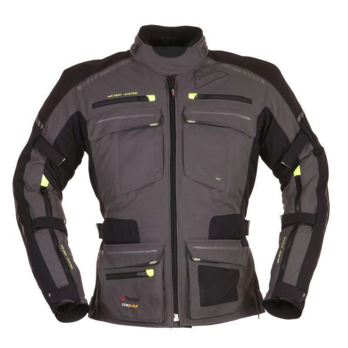 Dank weichem Kunstfaser-Gewebe auffallend angenehm zu tragende Jacke mit passenden Proportionen. Kräftige Protektoren an allen wichtigen Stellen, großer Rückenprotektor in praxisbezogener Длина. Wirkungsvolle Flächenlüftungen und zusätzliche Reißverschluss-Lüftungen auf der Brustseite, kleine Unterarm-Lüftungen, Dreifach-Lüftung am Rücken. Temperatur-Empfehlung: 5 bis über 24 Grad.