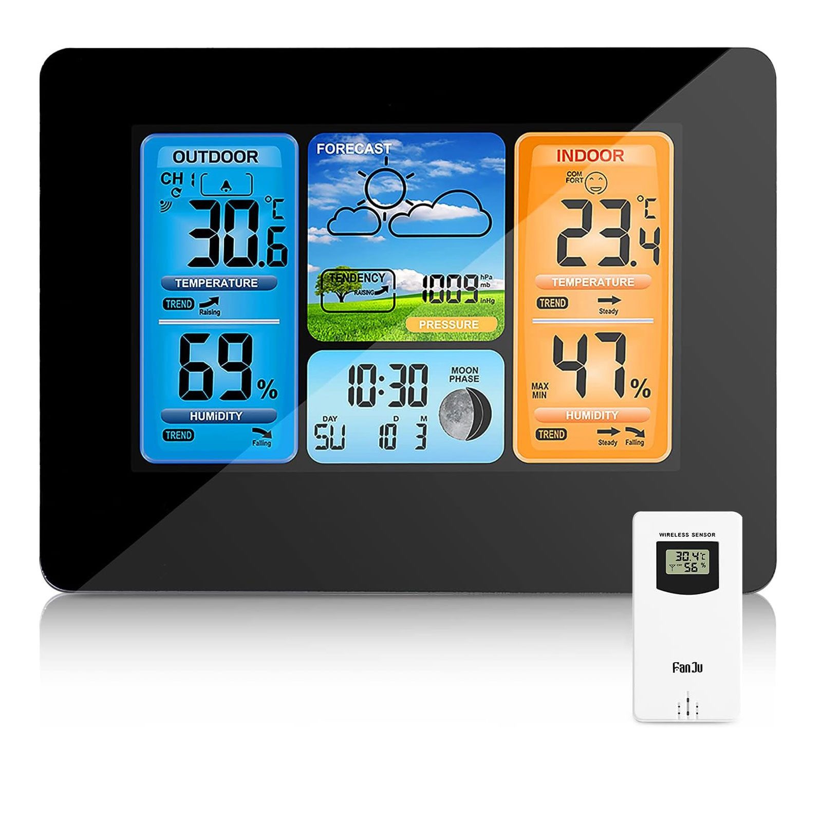 Besondere Merkmale | Mit Außensensor Alarm Temperatur Wettervorhersage Wetter Innen Außen |