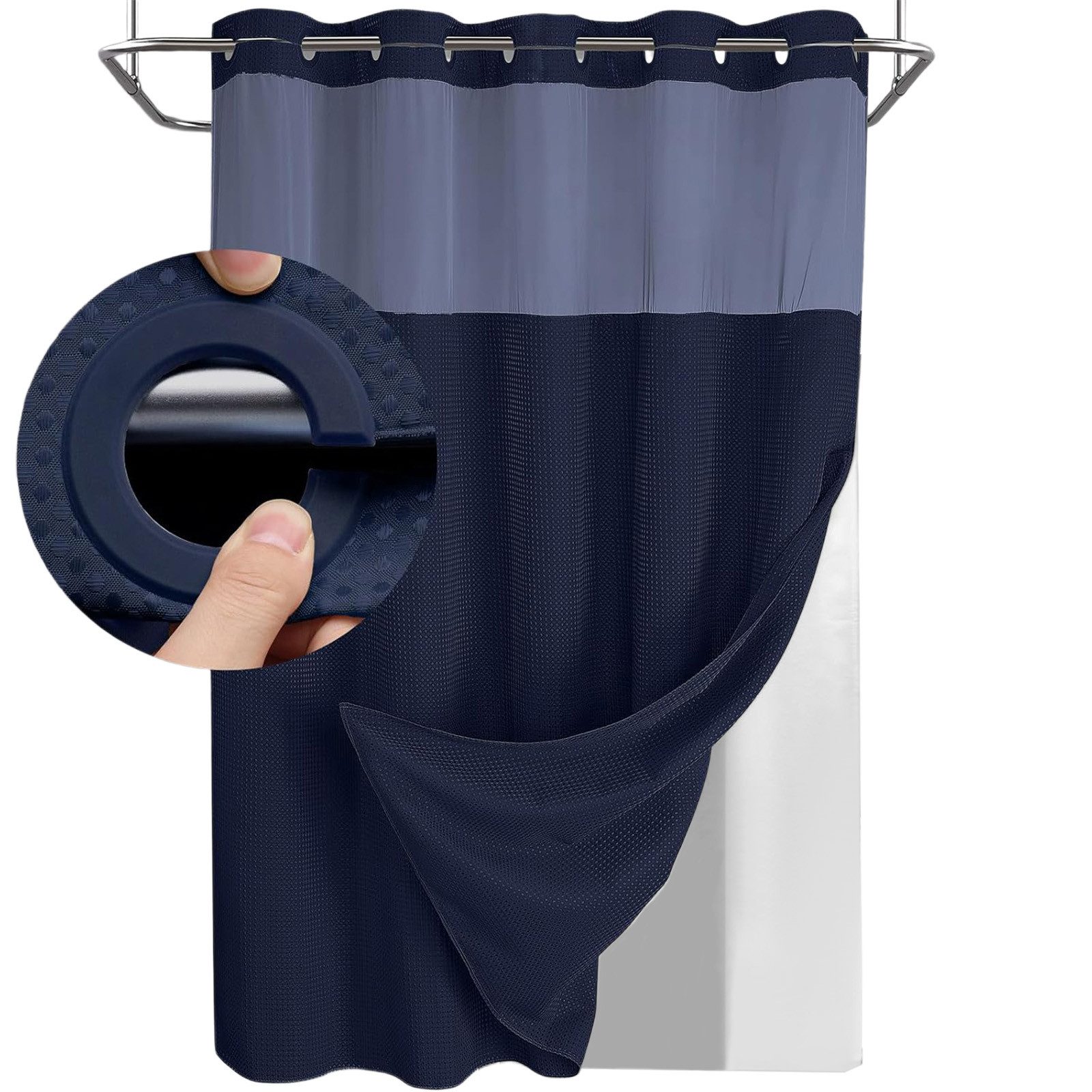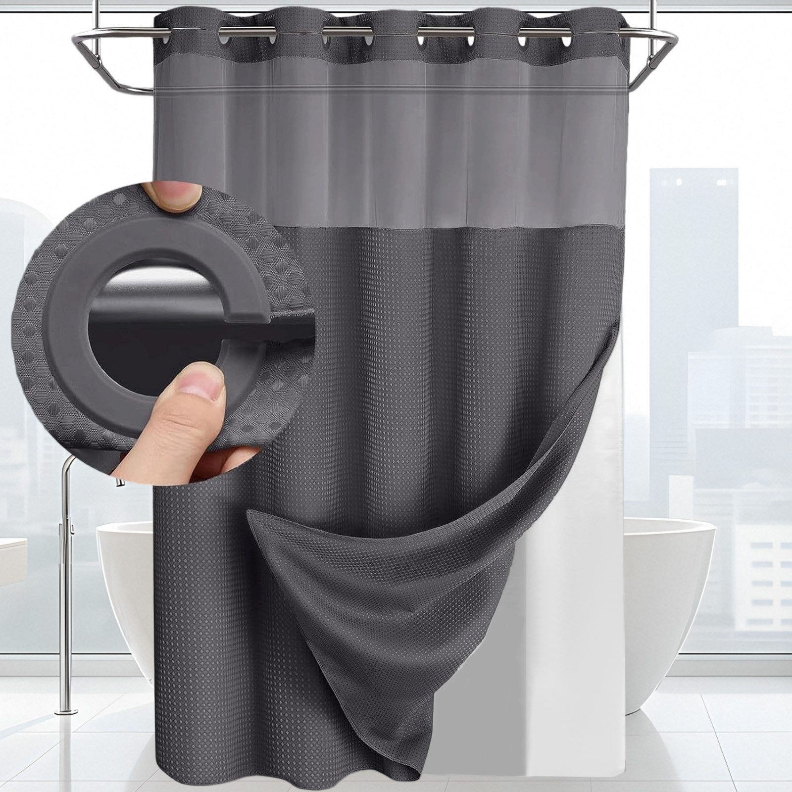 Der äußere Vorhang zeigt eine feine Waffeloptik, die dem Bad einen edlen Charakter verleiht.