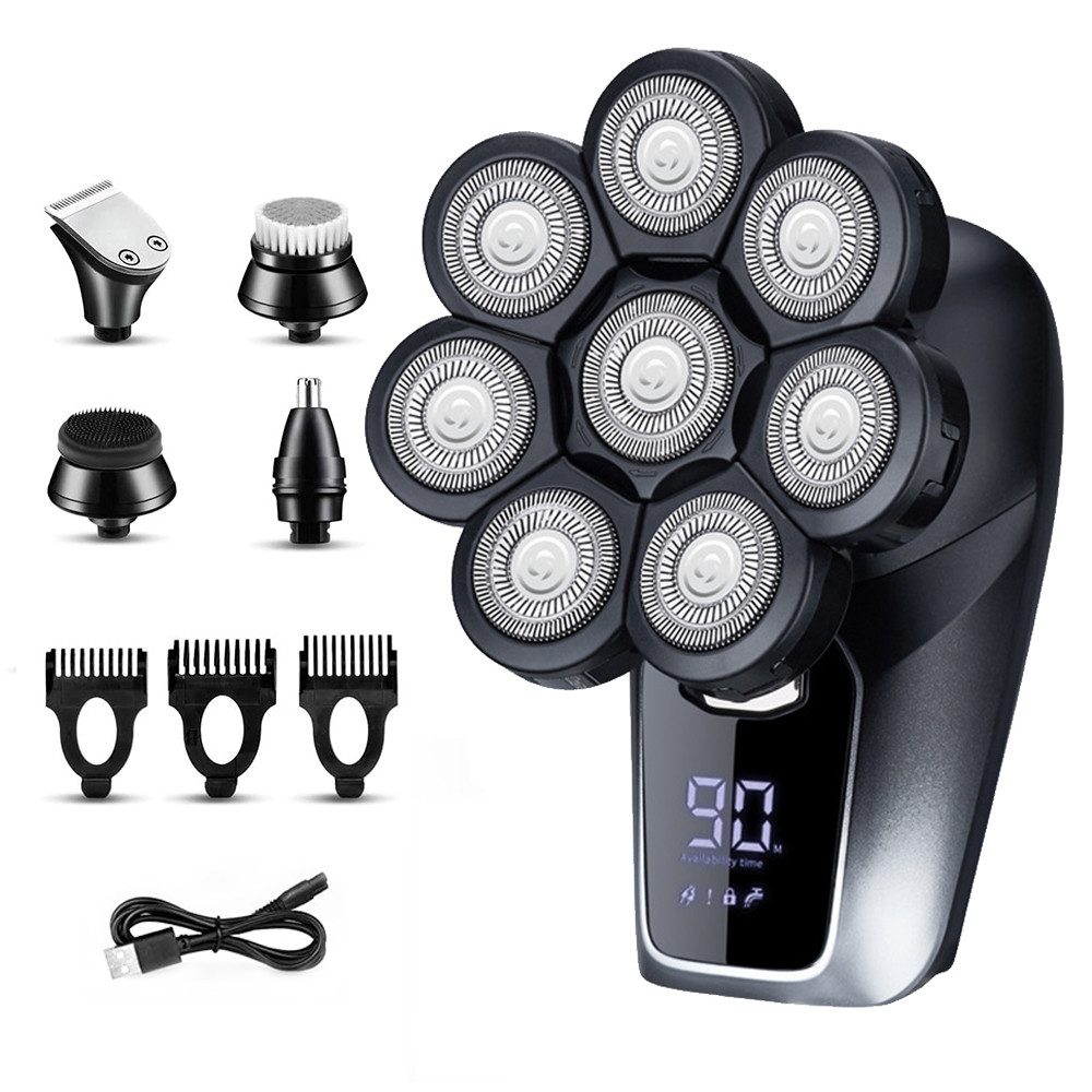Der MODFU Elektrorasierer hebt sich durch seine flexiblen 8D-Scherköpfe hervor, die sich fließend an Kopf- und Gesichtskonturen anlegen.