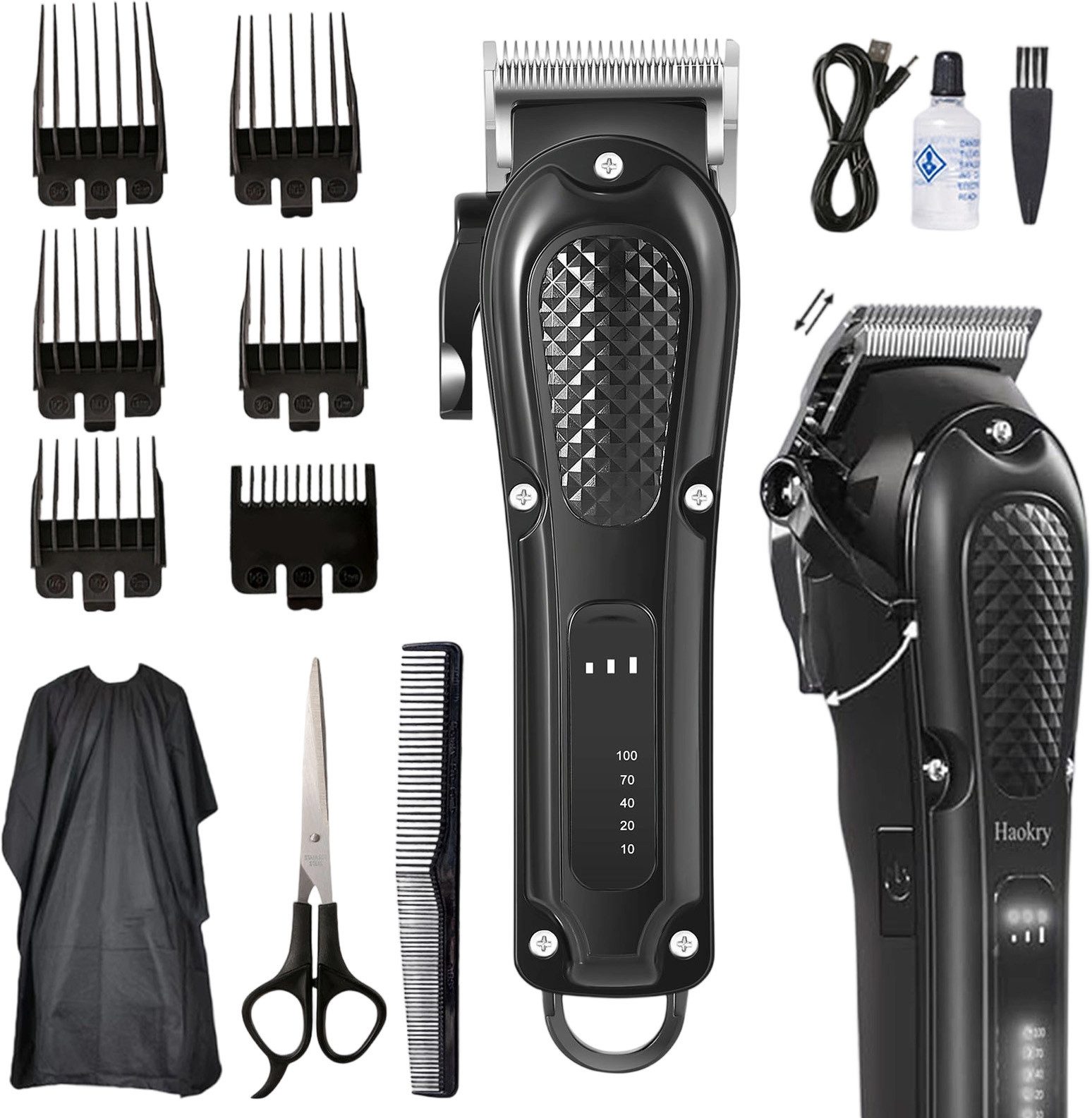 Dies ist ein komplettes Barbier-Set zum Haarschneiden, das einen elektrischen Haarschneider, einen Umhang, Schmieröl, eine Reinigungsbürste, einen Kamm, eine Schere, ein USB-Ladekabel und eine vollständige Auswahl an Schutzvorrichtungen (3/6/10/13/16/19mm) für verschiedene Haarlängen (0,5-2mm) enthält.