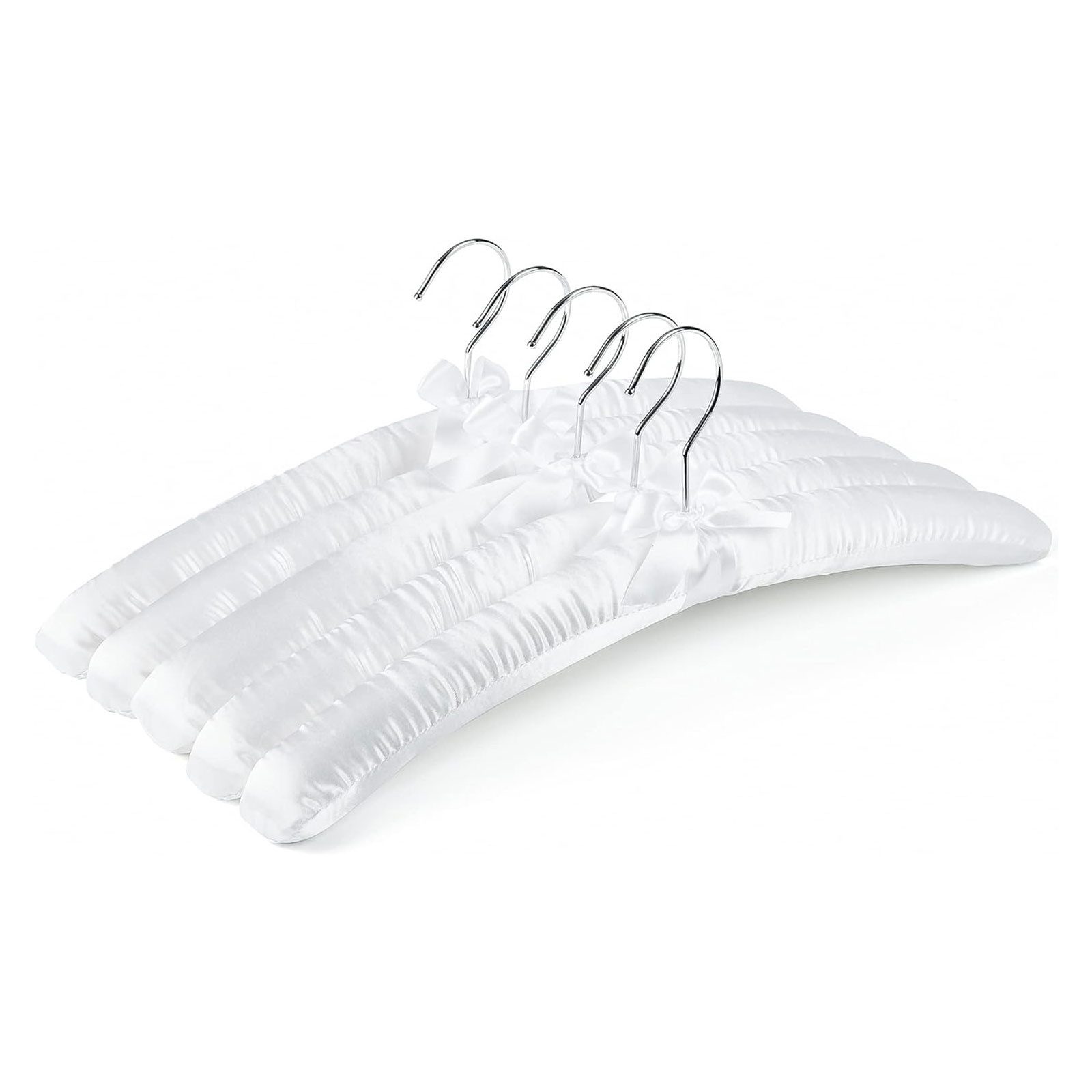 Set: Weiße Satinbügel im 5er Pack - Einheitliche Optik in Schrank, Ankleidezimmer oder Garderobe.
