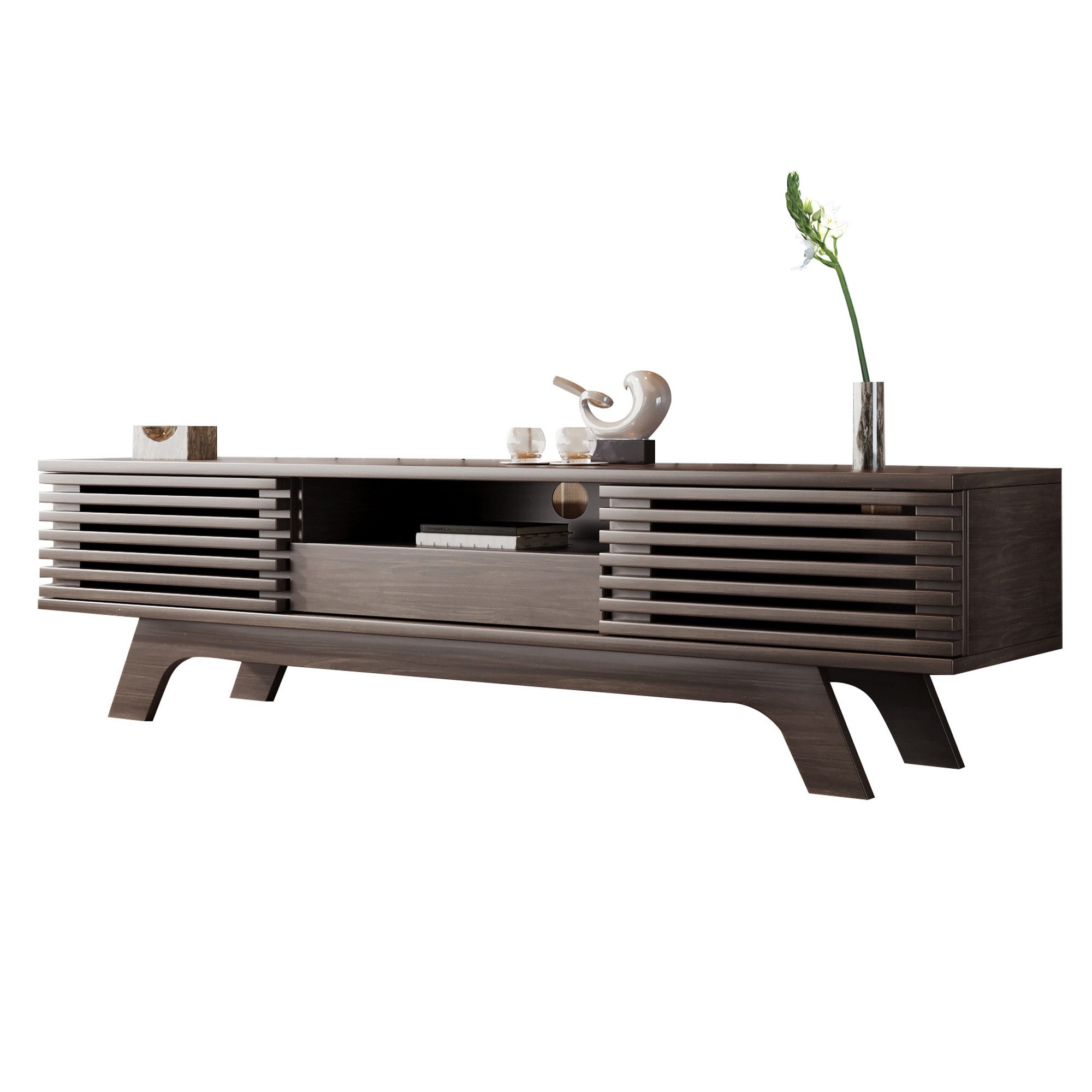 Der MODFU TV-Schrank kombiniert modernes Design mit einem Hauch von Vintage-Ästhetik. Die Türen sind mit Holzlamellen im Retro-Stil verziert, die dem Schrank einen einzigartigen Look verleihen. Mit einer Breite von 150 cm und zwei Türen bietet der Schrank reichlich Platz für TV-Zubehör, während die geräumige Schublade ideal für kleinere Gegenstände wie Fernbedienungen ist. Offene Fächer mit integrierten Kabelöffnungen erleichtern das Kabelmanagement und sorgen für ein aufgeräumtes Wohnzimmer. Hergestellt aus robusten Materialien, ist dieser Schrank eine langlebige und elegante Lösung.