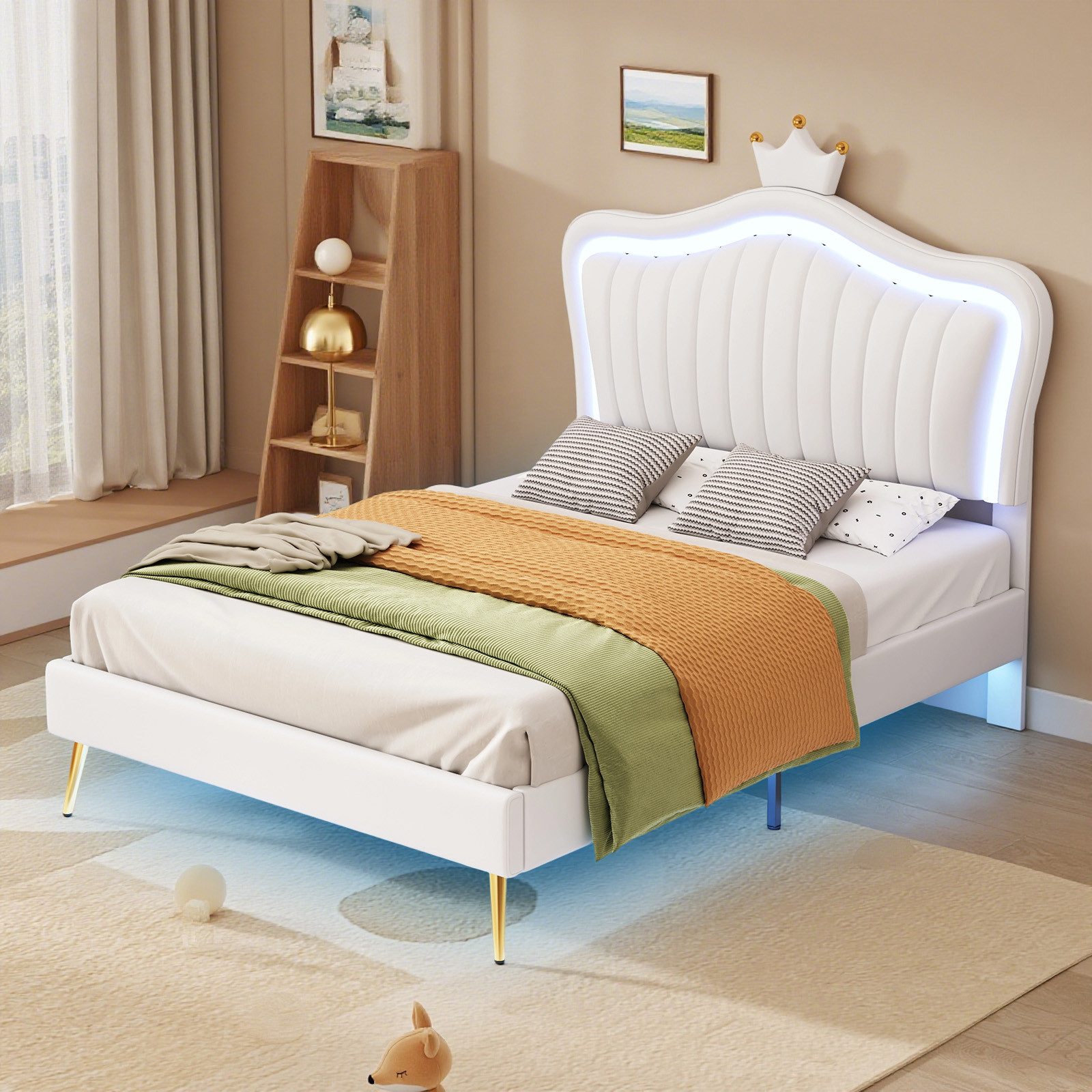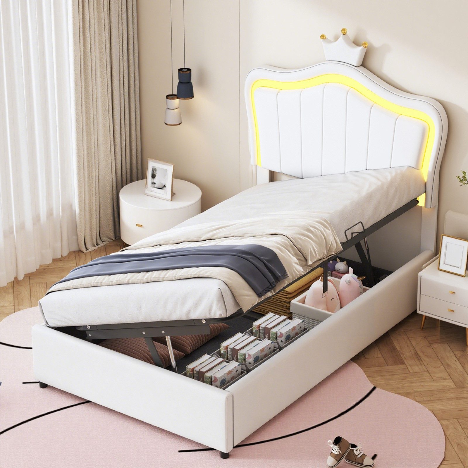 LED-Beleuchtung für eine magische Atmosphäre: Mit den eingebauten LED-Lichtern im Kopfteil und unter dem Bett können Sie mit einer Fernbedienung zwischen 16 verschiedenen Farben und 4 automatischen Wechselmodi wählen. Diese LED-Beleuchtung verleiht dem Raum eine besondere, stimmungsvolle Atmosphäre – ideal für das Nachtlicht oder als Highlight im Zimmer.