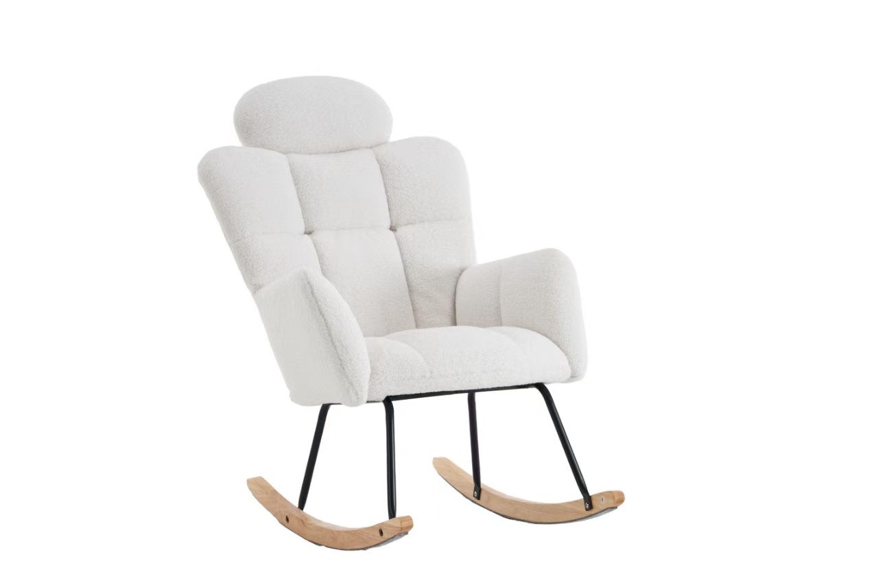 Der MODFU Schaukelstuhl überzeugt durch seine hochwertigen Materialien und sein durchdachtes Design. Der weiche Teddy-Stoff bietet in Kombination mit der dicken Schaumstoffpolsterung ein komfortables Sitzgefühl. Der Holzrahmen und das Metallgestell garantieren Stabilität und Sicherheit. Der Stuhl ist in nur wenigen Minuten aufgebaut, während Filzstreifen an der Unterseite den Boden vor Kratzern schützen und ein leises Schaukeln ermöglichen. Mit seinem zeitlosen Design passt er sich jedem Wohnraum an.