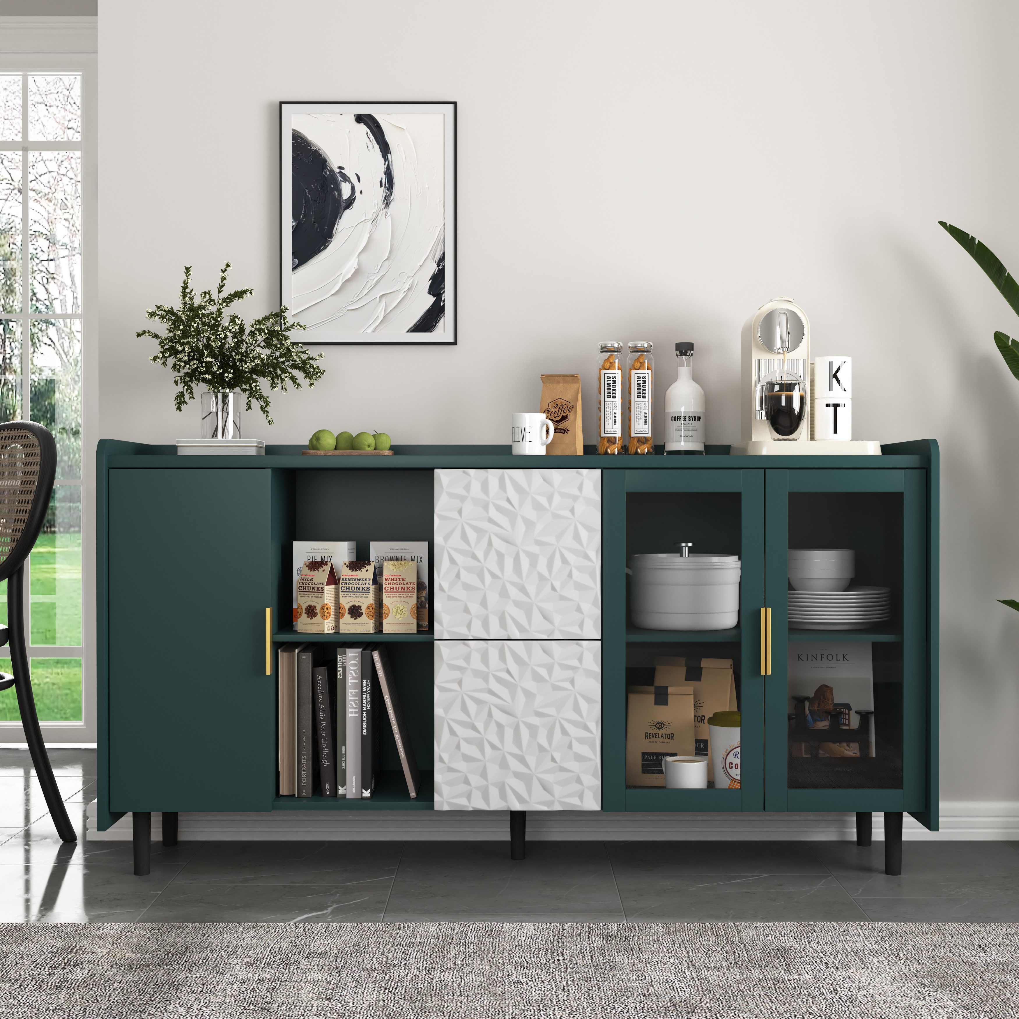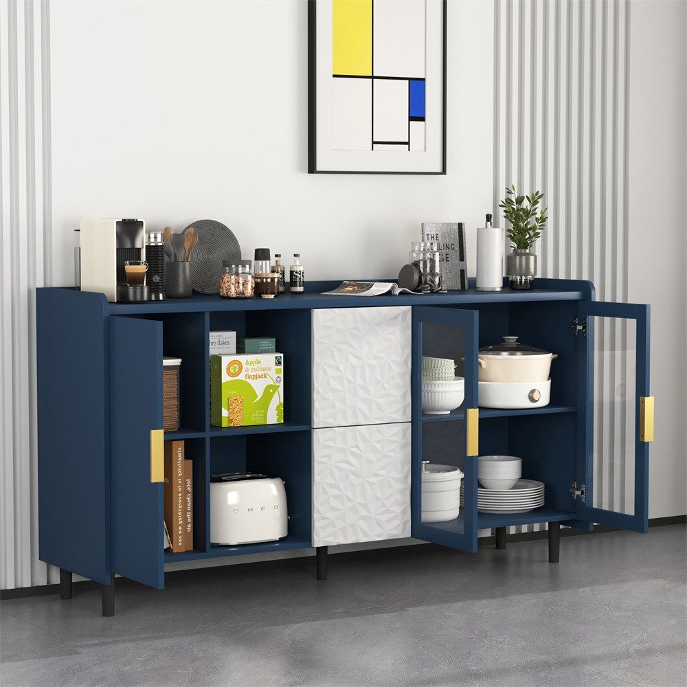 Dank der großzügigen 3 Schubladen und 1 Tür sowie der praktischen Glastür bietet das Sideboard eine ideale Aufbewahrungslösung für Ihre Küchenutensilien, Bücher, Dekoration und vieles mehr. Die verstellbaren Einlegeböden ermöglichen es Ihnen, den Stauraum flexibel an Ihre Bedürfnisse anzupassen. So können Sie Teller, Besteck, Gewürzflaschen, Kaffeebohnenschalen oder Ihre Lieblingskunstwerke ordentlich verstauen.