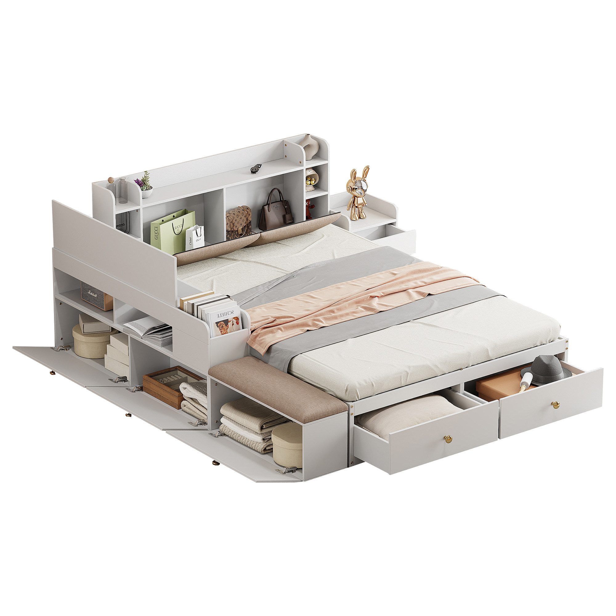 Dieses Kombibett kommt mit zwei großen Schubladen sowie einem praktischen Sideboard und Nachttisch. So haben Sie ausreichend Stauraum für alles, was Sie benötigen, ohne den Raum überladen zu wirken.