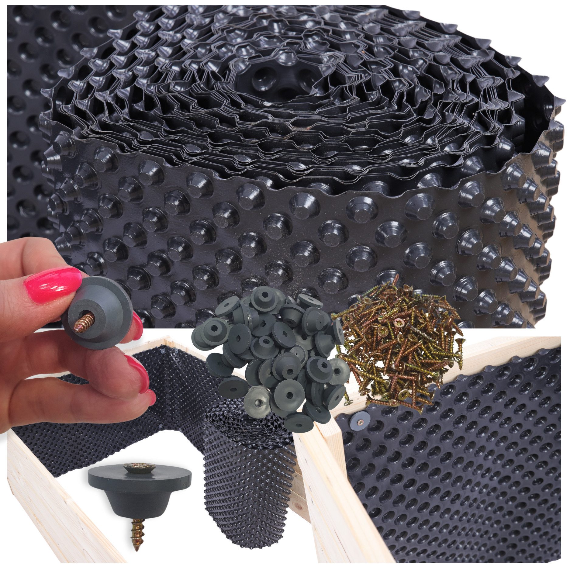 In diesem Angebot erhalten Sie die Noppenfolie zusammen mit perfekt abgestimmten Befestigungselementen. Diese praktische Lösung erleichtert die Montage und sorgt für einen stabilen und dauerhaften Halt.