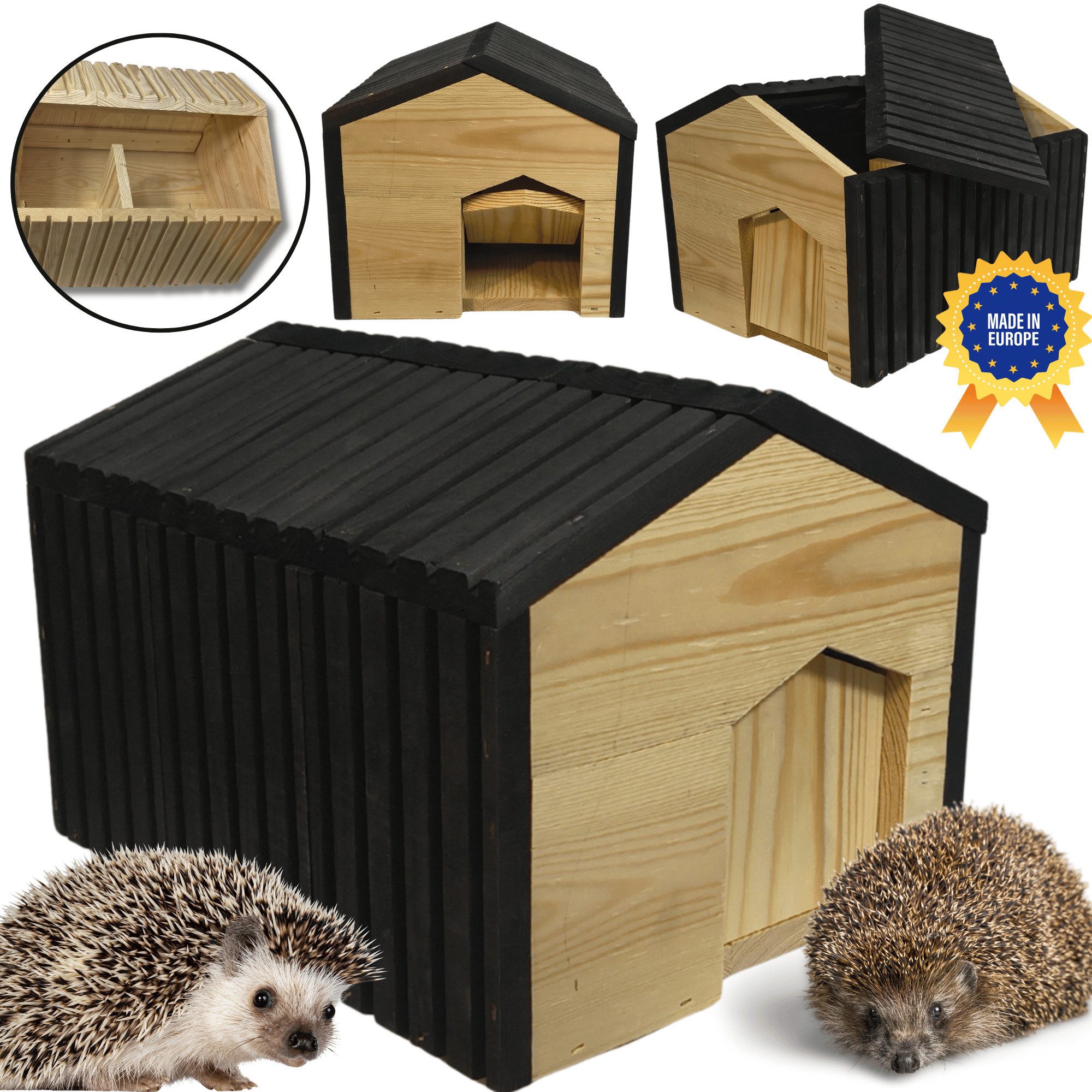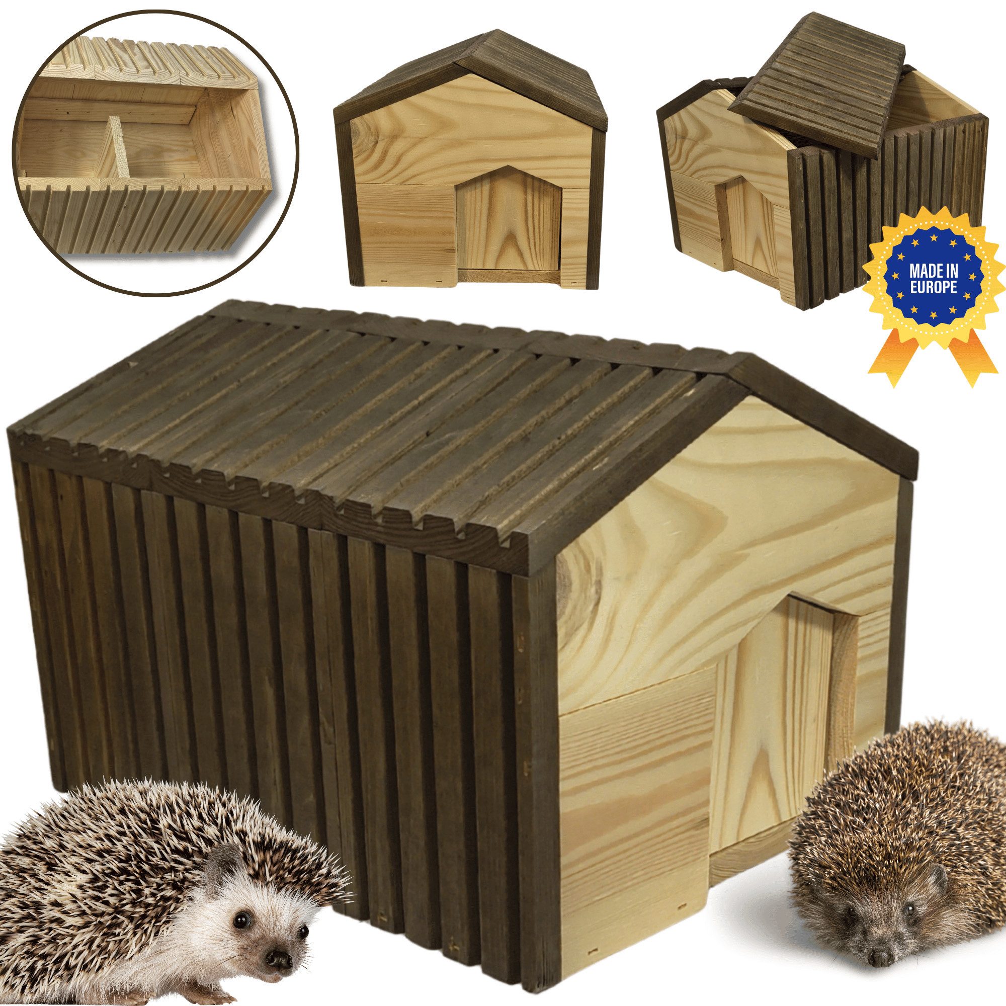 Schaffen Sie mit unserem robusten **Naturholzhaus** einen sicheren Rückzugsort für **nützliche Igel** in Ihrem Garten. Dieses Produkt stammt direkt von einem polnischen Hersteller und bietet Igeln das ganze Jahr über optimalen **Winterschlaf und Schutz**.